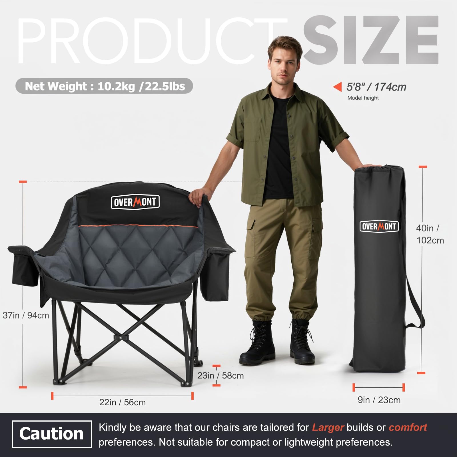 Entdecken Sie den ultimativen Komfort für Ihre Outdoor-Abenteuer mit diesem grosszügig dimensionierten und äusserst stabilen Campingsofa. Es wurde speziell für Personen entwickelt, die Wert auf viel Platz, eine robuste Bauweise und luxuriöse Bequemlichkeit legen.