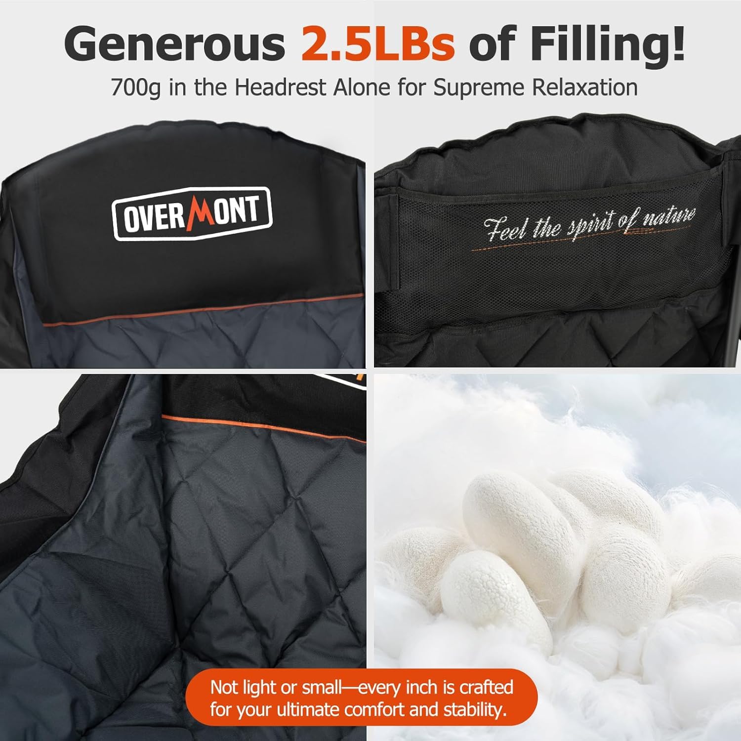 Overmont Übergrosser Gepolsterter Klapp Campingstuhl - Schwarz