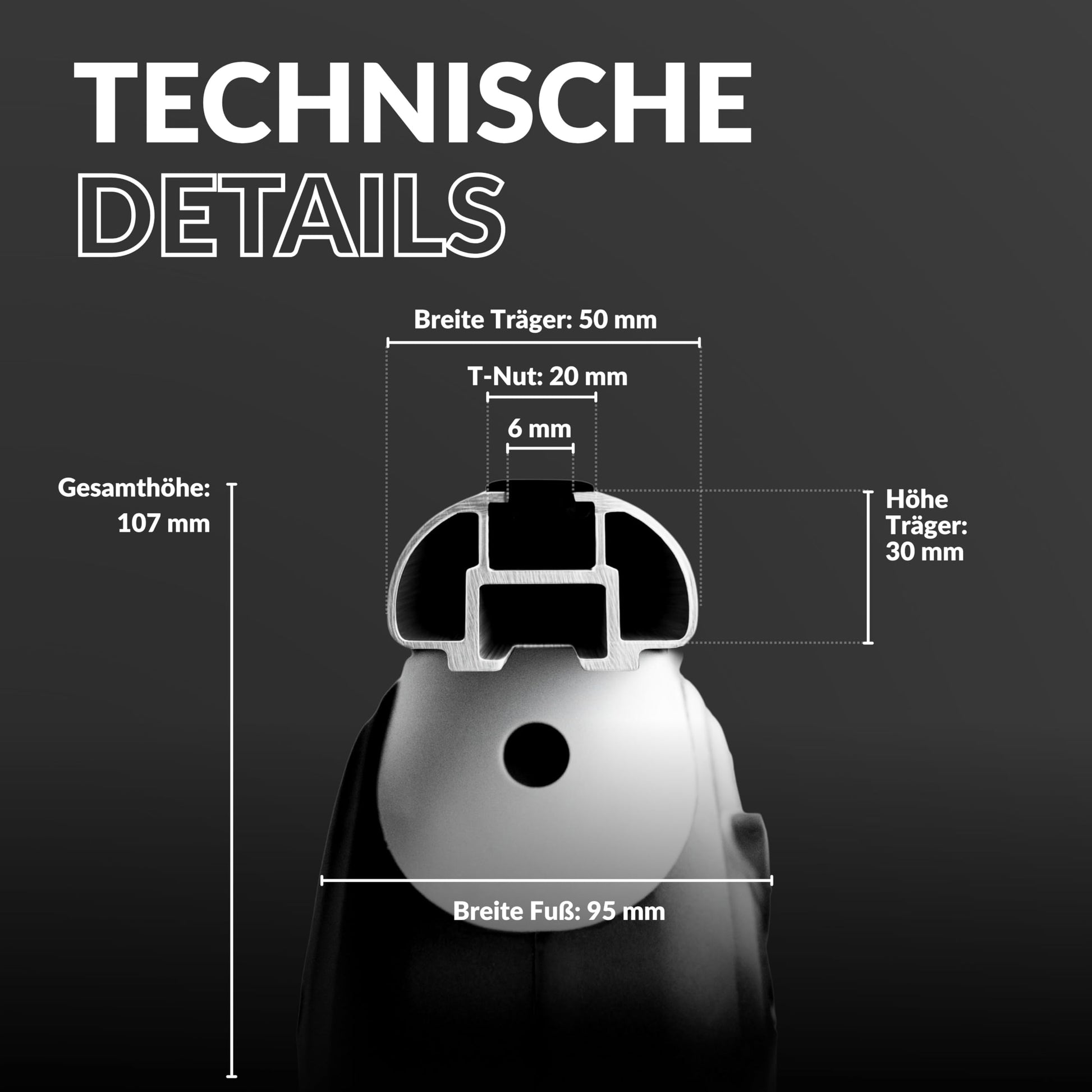 - Robustes Aluminium: Gefertigt aus hochwertigem, rostfreiem Aluminium, bietet der Träger eine beachtliche Tragfähigkeit von bis zu 90 kg – perfekt für Dachboxen, Skier, Velos oder Surfbretter.