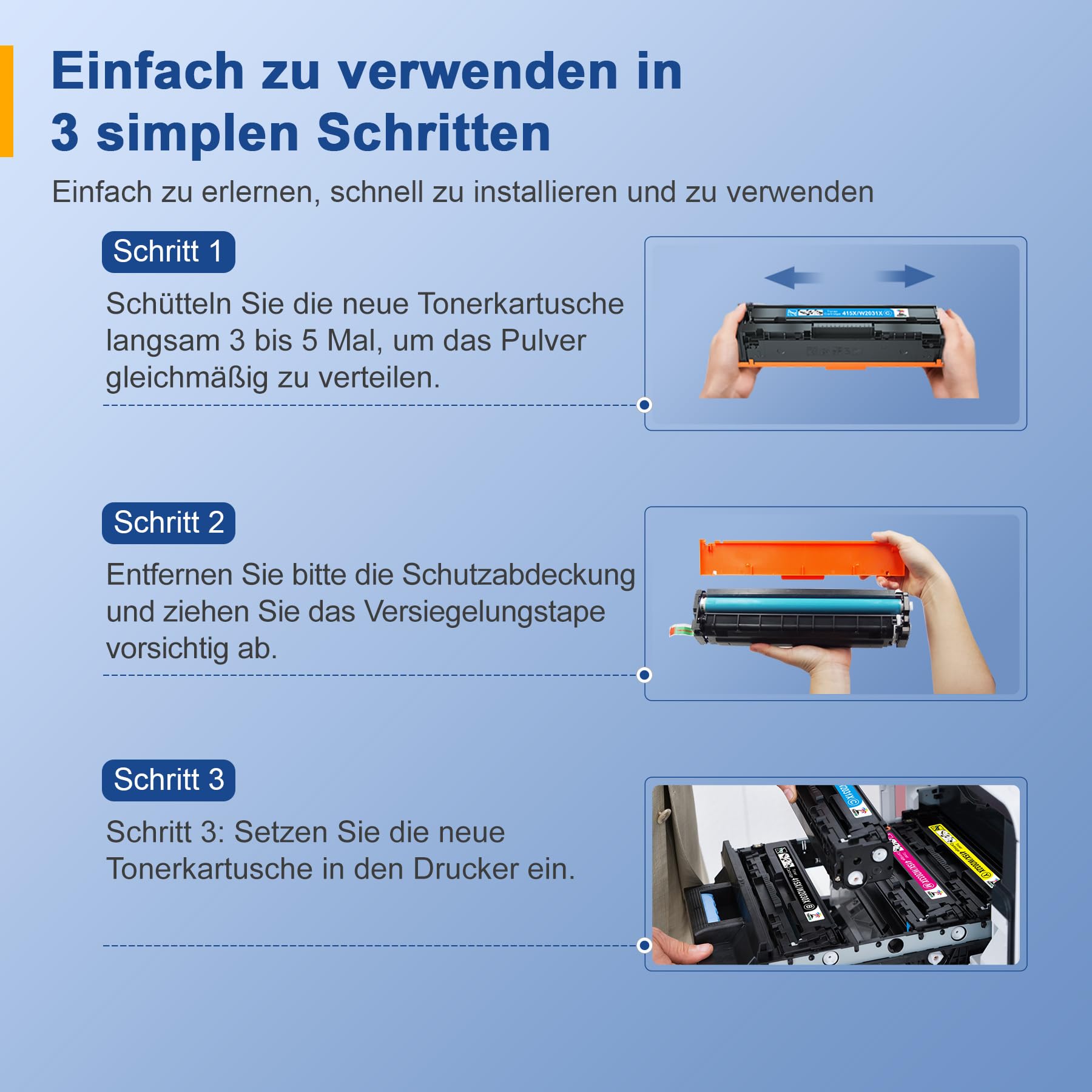 Steigern Sie Ihre Druckeffizienz mit diesem kompatiblen 4-Farben-Toner-Set, der idealen und kostengünstigen Lösung für Ihre HP Color LaserJet Pro Drucker. Erleben Sie zuverlässige Leistung und herausragende Druckqualität für all Ihre Dokumente.