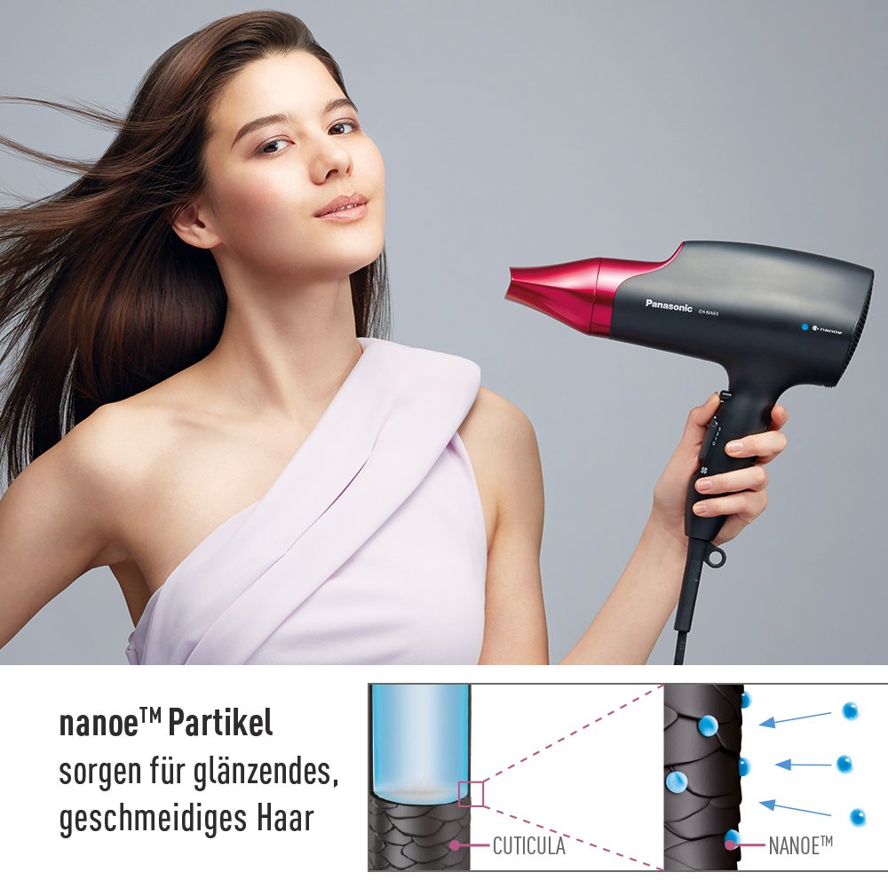 - Innovative Nanoe-Technologie: Reichert das Haar beim Trocknen mit Feuchtigkeit an, um Glanz zu fördern und Frizz zu reduzieren.