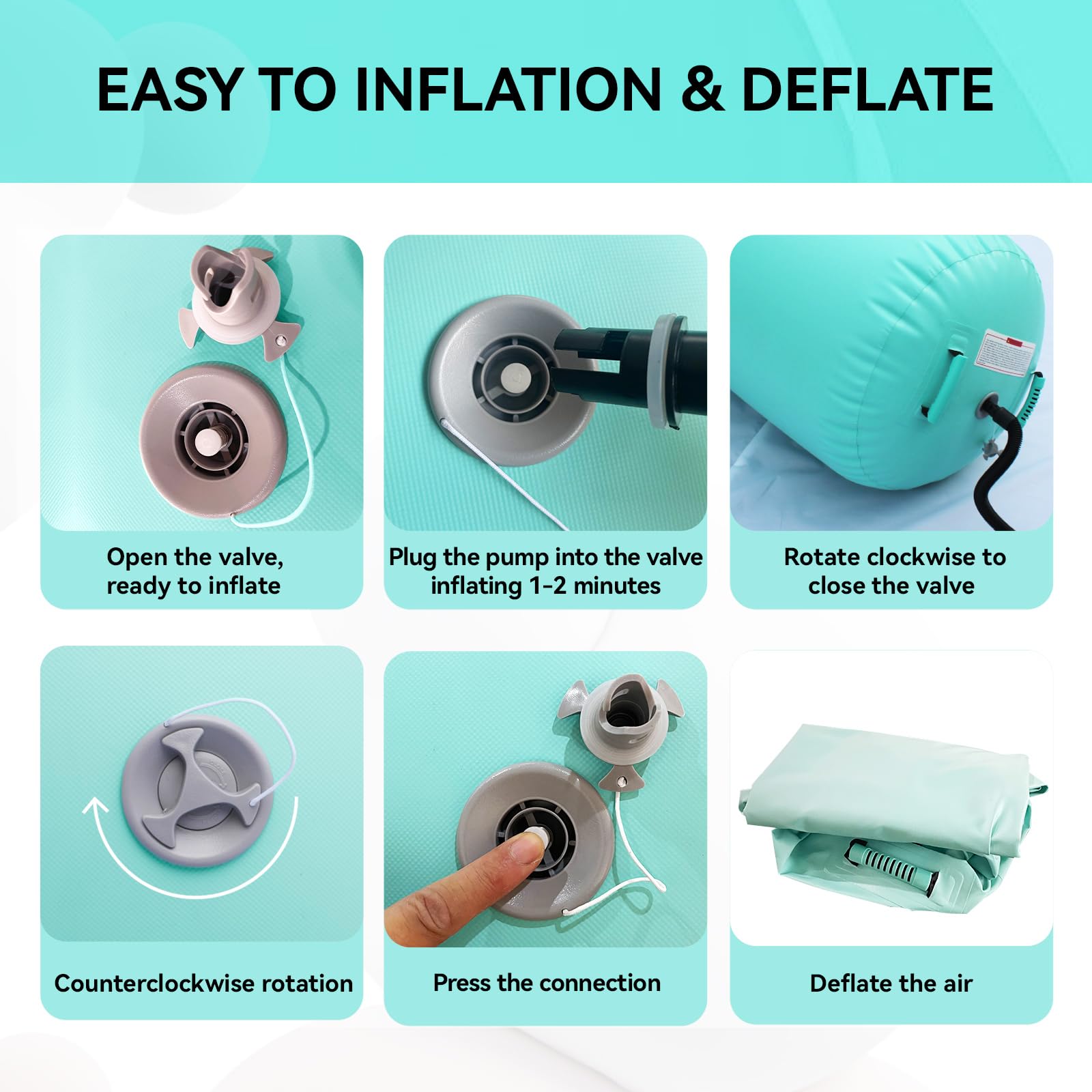 - Schnelles Aufblasen: Mit der mitgelieferten elektrischen Luftpumpe ist die Rolle in nur 1-2 Minuten einsatzbereit oder wieder entleert.