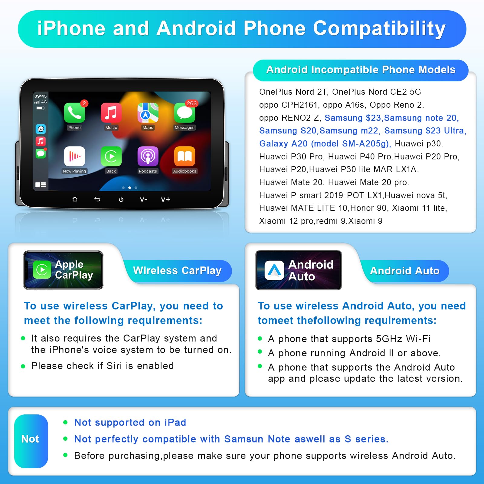 - Kabelloses Apple CarPlay & Android Auto: Verbinden Sie Ihr Smartphone ohne Kabel für Navigation, Musik und Anrufe.
