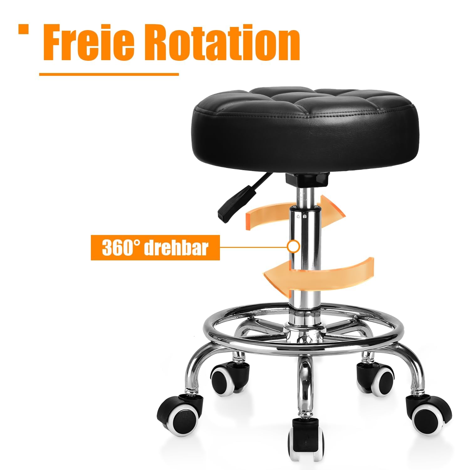 - Leise und bodenschonende Rollen: Hochwertige Universalrollen ermöglichen eine sanfte und geräuschlose 360-Grad-Drehung. Sie gleiten mühelos über verschiedene Bodenbeläge wie Parkett oder Keramikplatten, ohne Spuren zu hinterlassen.