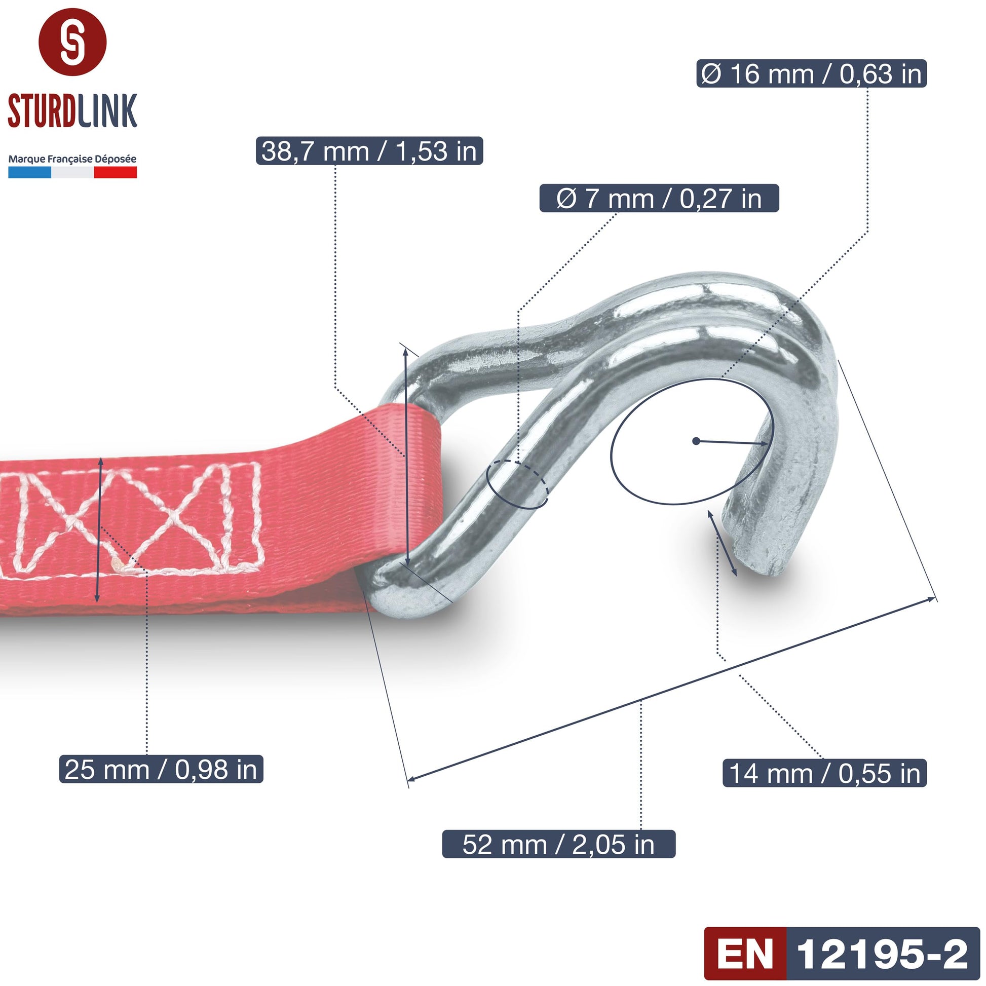 - Abmessungen: Gurtbreite von 25 mm bei einer Gesamtlänge von 5 Metern.