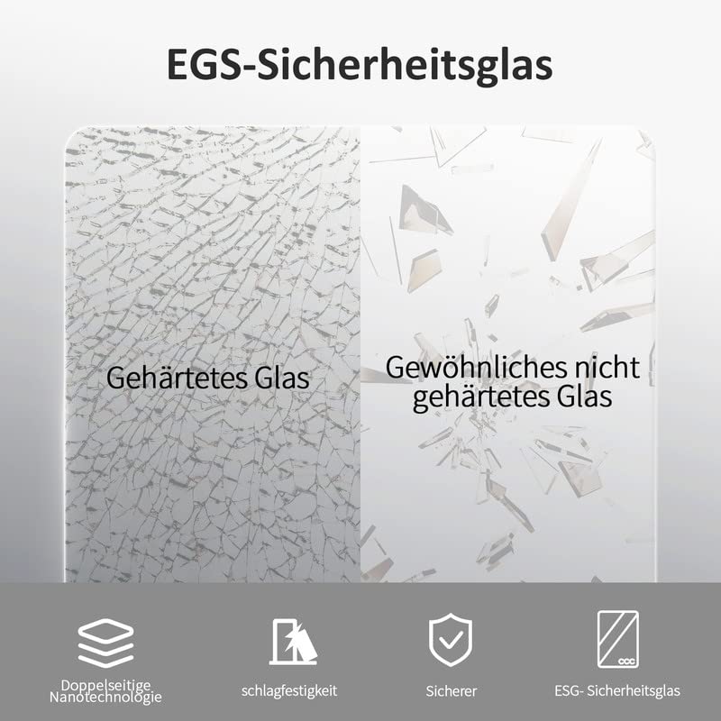 - Hochwertiges Sicherheitsglas: Gefertigt aus 6 mm starkem, nach EN 12150 zertifiziertem ESG-Sicherheitsglas, das eine erhöhte Stoss- und Schwingungsfestigkeit aufweist.