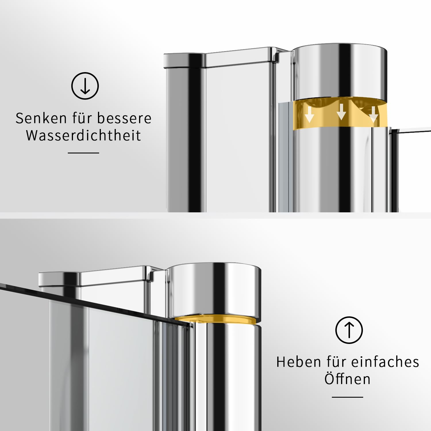- Flexible Masse: Mit einer Breite von 1200-1210 mm und einer Höhe von 1400 mm sowie einem 10-mm-Wandausgleich lässt sich die Duschwand auch an nicht perfekt geraden Wänden problemlos montieren.