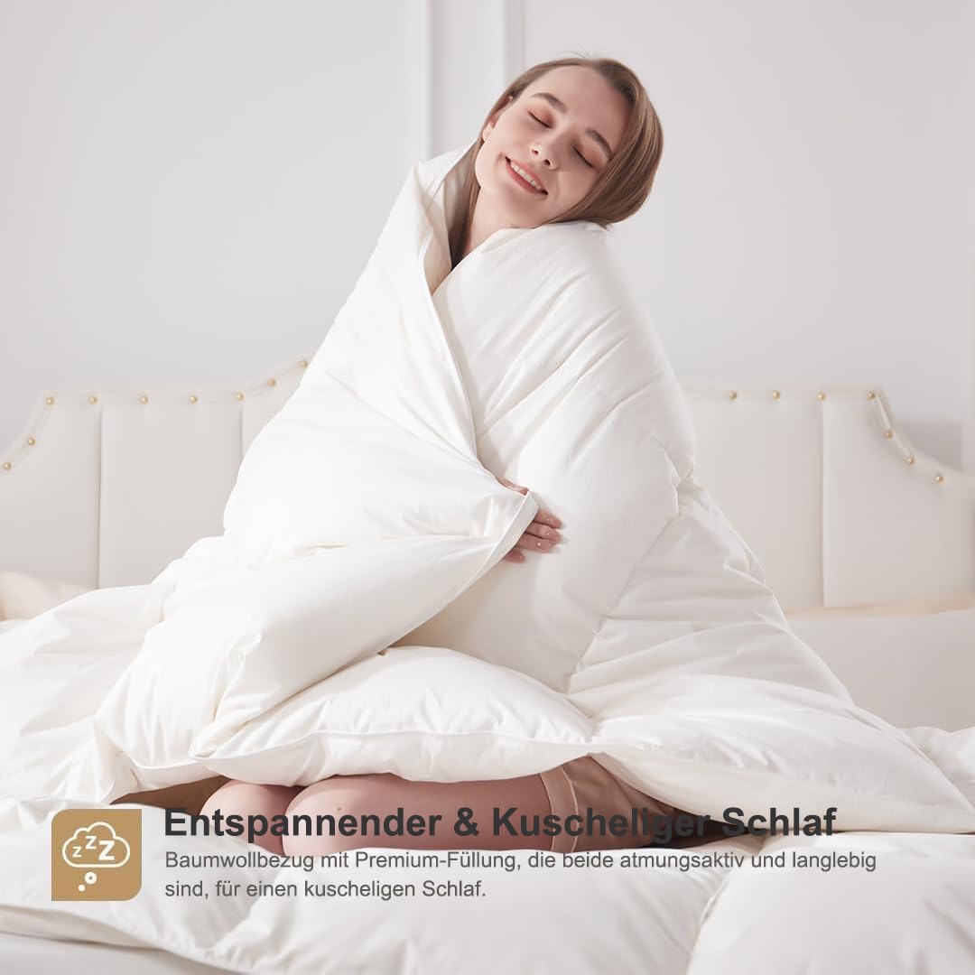Diese Decke ist als Ganzjahresdecke konzipiert. Dank der Füllmenge von 1280 g bietet sie eine ausgewogene Wärme für das ganze Jahr, sodass Sie im Frühling, Sommer, Herbst und Winter komfortabel schlafen, ohne die Decke wechseln zu müssen.