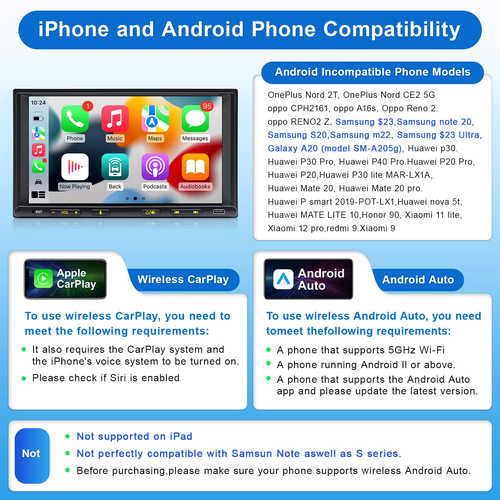 CarPro Doppel Din Android Autoradio - 7 Zoll Wireless CarPlay