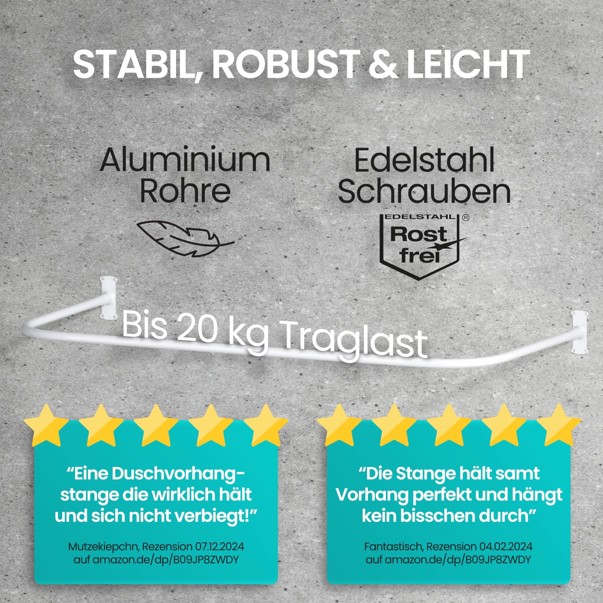 Absolut. Die Stange ist aus langlebigem Aluminium gefertigt und mit einer weissen Schutzschicht versehen. Die mitgelieferten Haken bestehen aus rostfreiem Edelstahl (201), was einen dauerhaften Schutz vor Korrosion und unschönen Rostflecken garantiert.