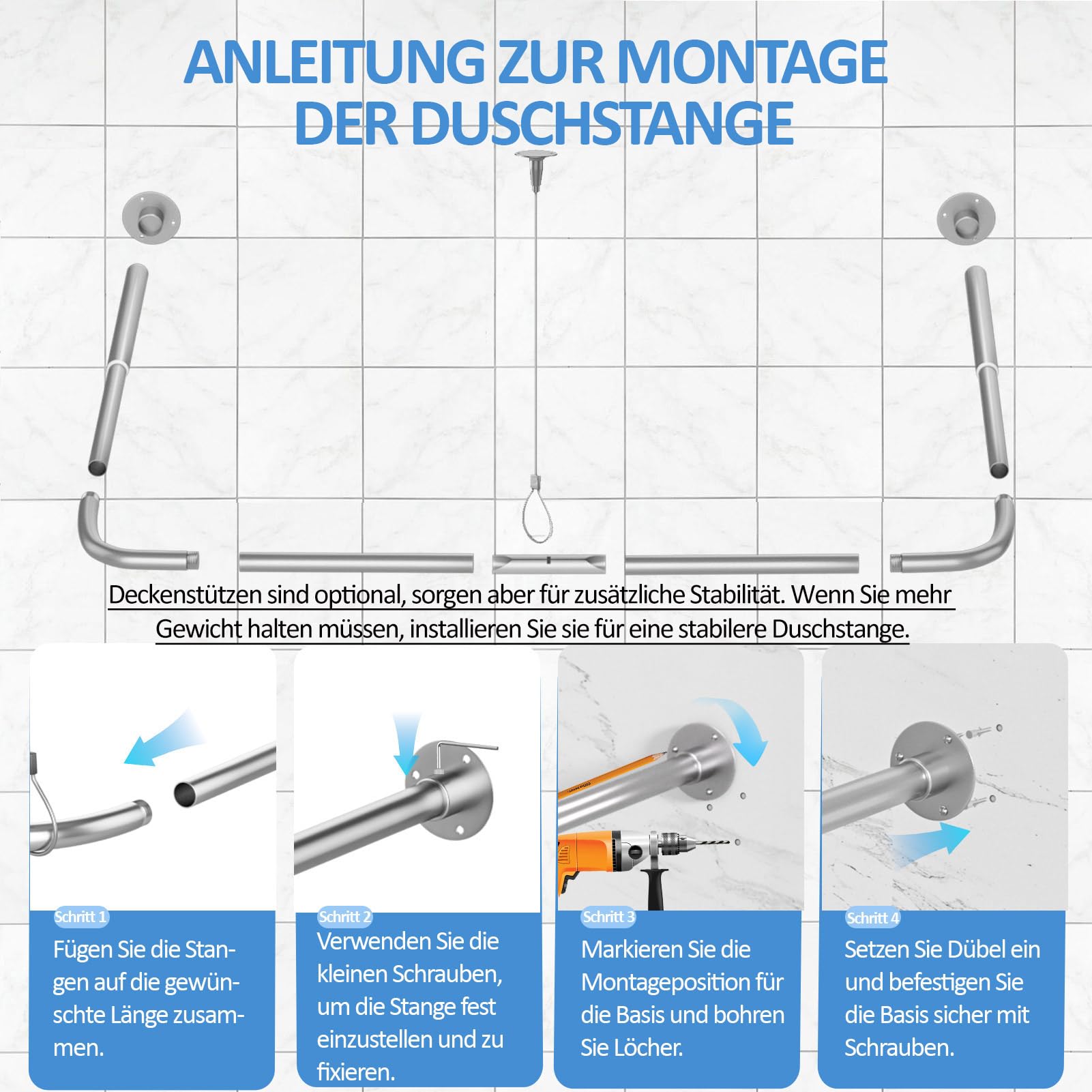 Entdecken Sie die ultimative Flexibilität für Ihr Badezimmer mit dieser anpassungsfähigen Duschvorhangstange. Sie lässt sich je nach Raumsituation perfekt in U- oder L-Form montieren und bietet eine stabile sowie elegante Lösung für jede Dusche oder Badewanne.
