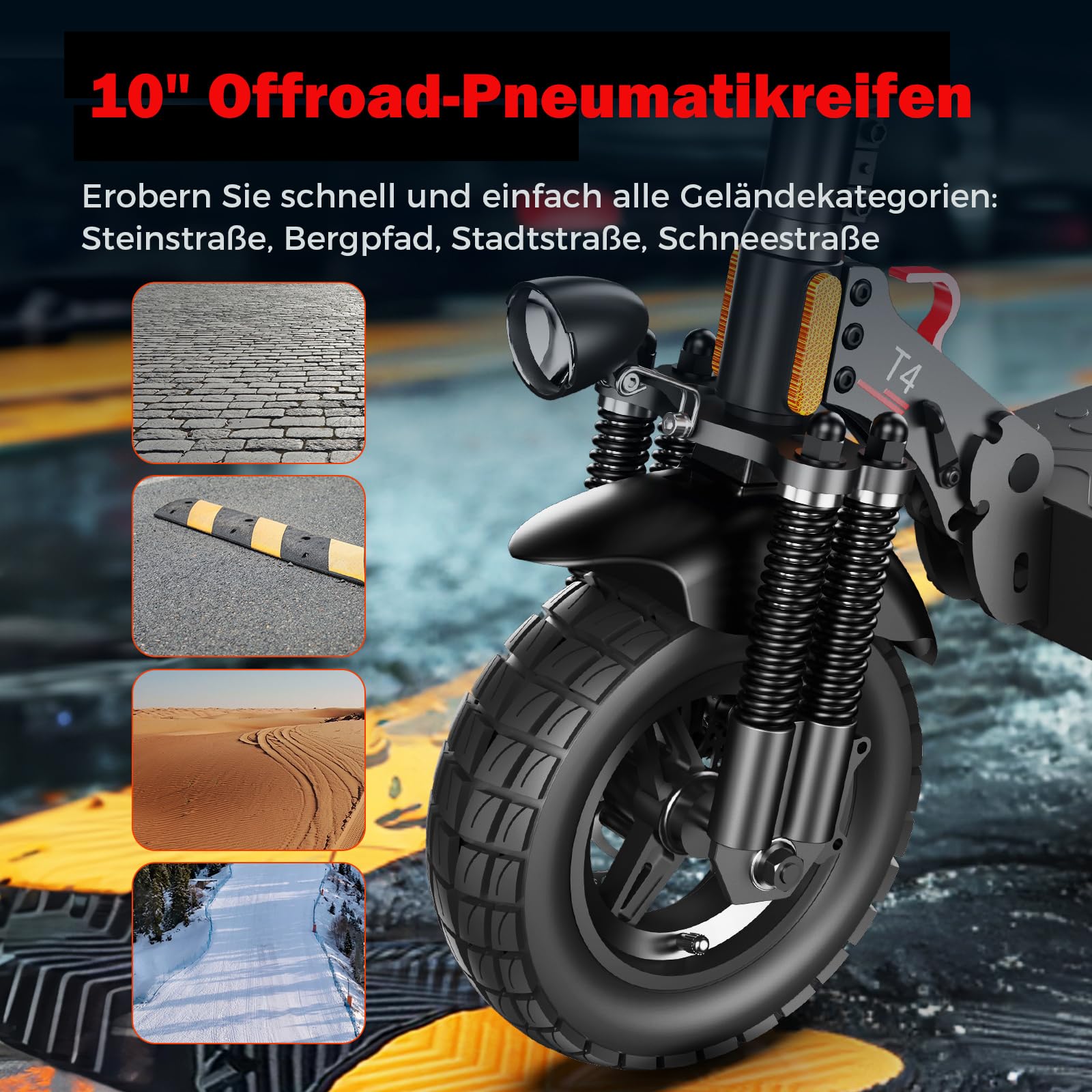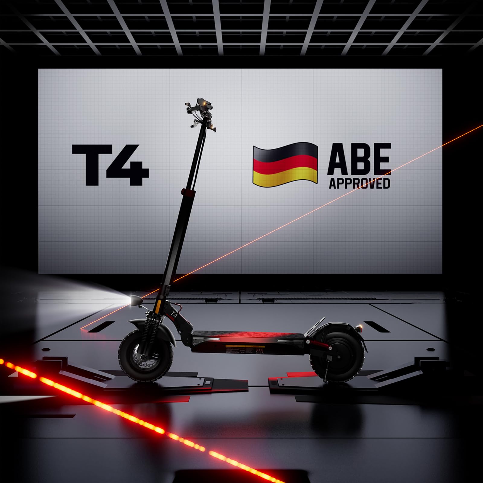 Der T4 E-Scooter mit Strassenzulassung ist Ihr robuster und zuverlässiger Partner für den urbanen Alltag und Abenteuer abseits befestigter Wege. Er kombiniert starke Leistung mit durchdachten Sicherheitsmerkmalen und hohem Fahrkomfort.