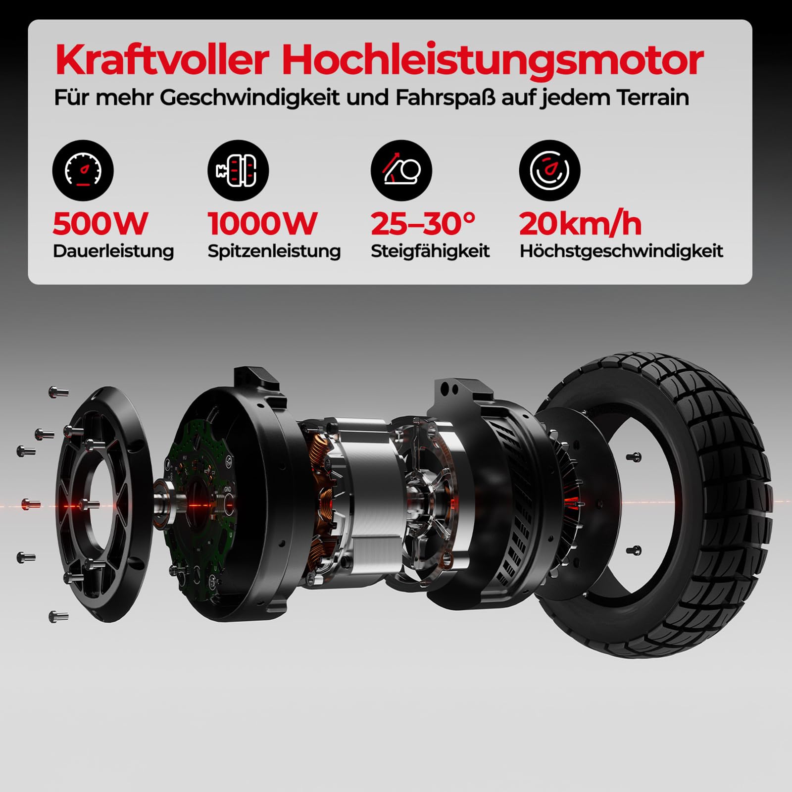 - Leistungsstarker Motor: 500W für mühelose Steigungen.