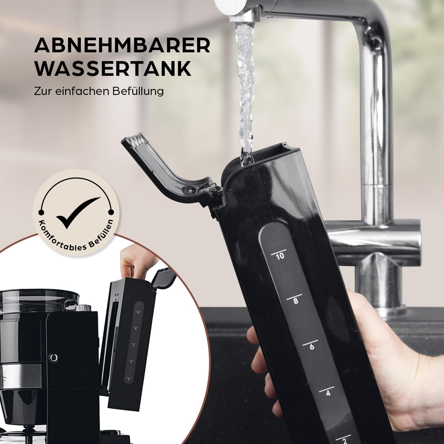 - Grosse Kapazität: Der 1,25-Liter-Wassertank bereitet bis zu 10 Tassen Kaffee zu.
