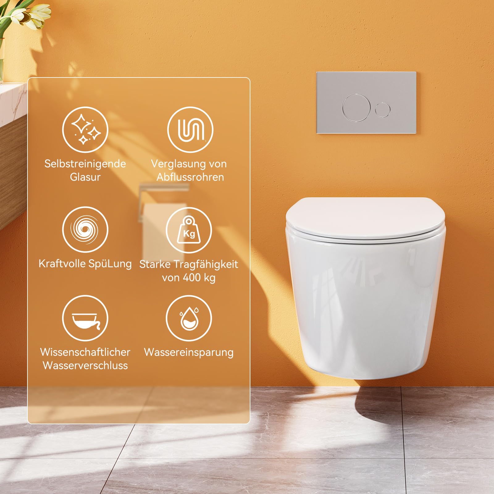 Hänge WC Spülrandlos Absenkautomatik – Weiss, Nano Beschichtung