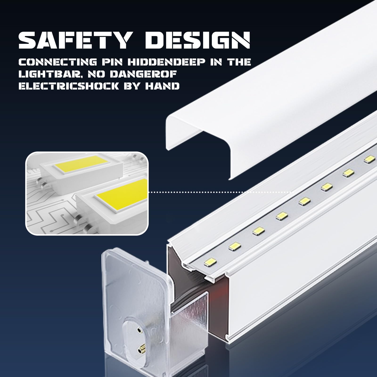 Die Leuchte ist auf eine sehr lange Lebensdauer von über 50'000 Stunden ausgelegt. Sie besteht aus robustem, stoss- und hitzebeständigem PC-Material. Für maximale Sicherheit bei der Installation sind die Anschlussstifte tief im Gehäuse versenkt, um versehentlichen Kontakt zu verhindern.