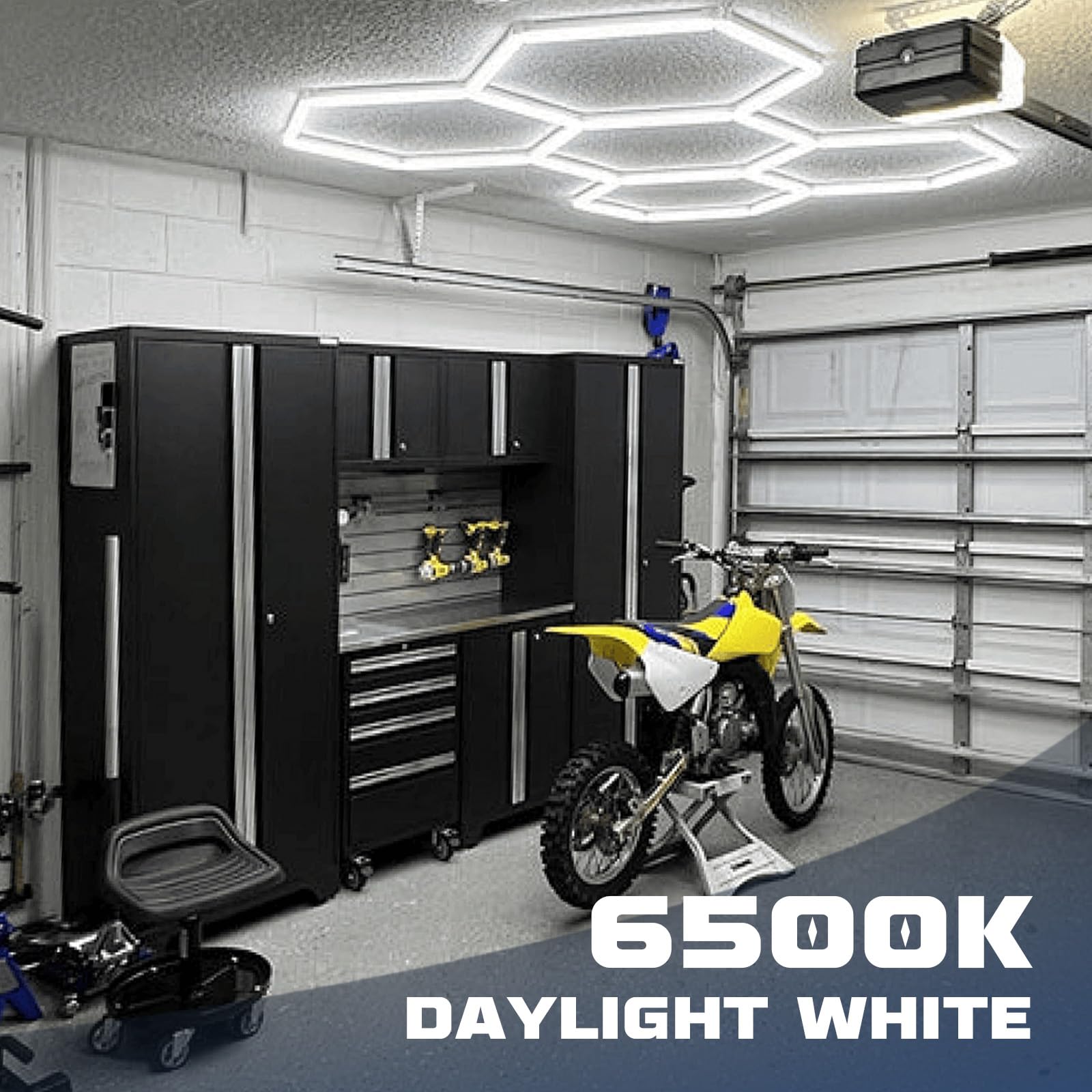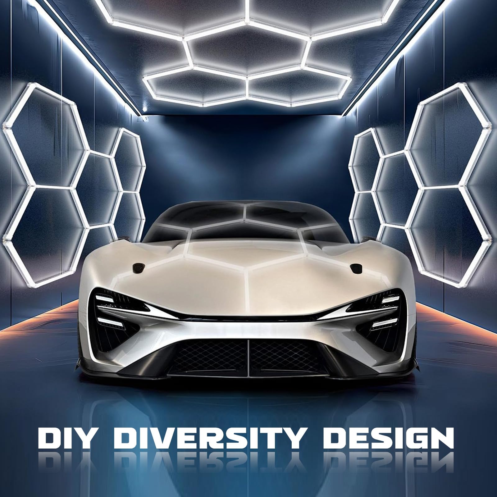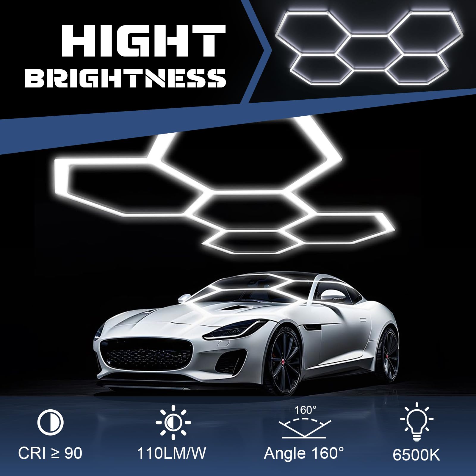 Verwandeln Sie Ihre Garage, Werkstatt oder Ihren Ausstellungsraum in einen professionell beleuchteten Bereich. Diese modulare Deckenleuchte im markanten Hexagon-Design sorgt für eine grossflächige und schattenfreie Ausleuchtung, die jeden Winkel taghell erstrahlen lässt.