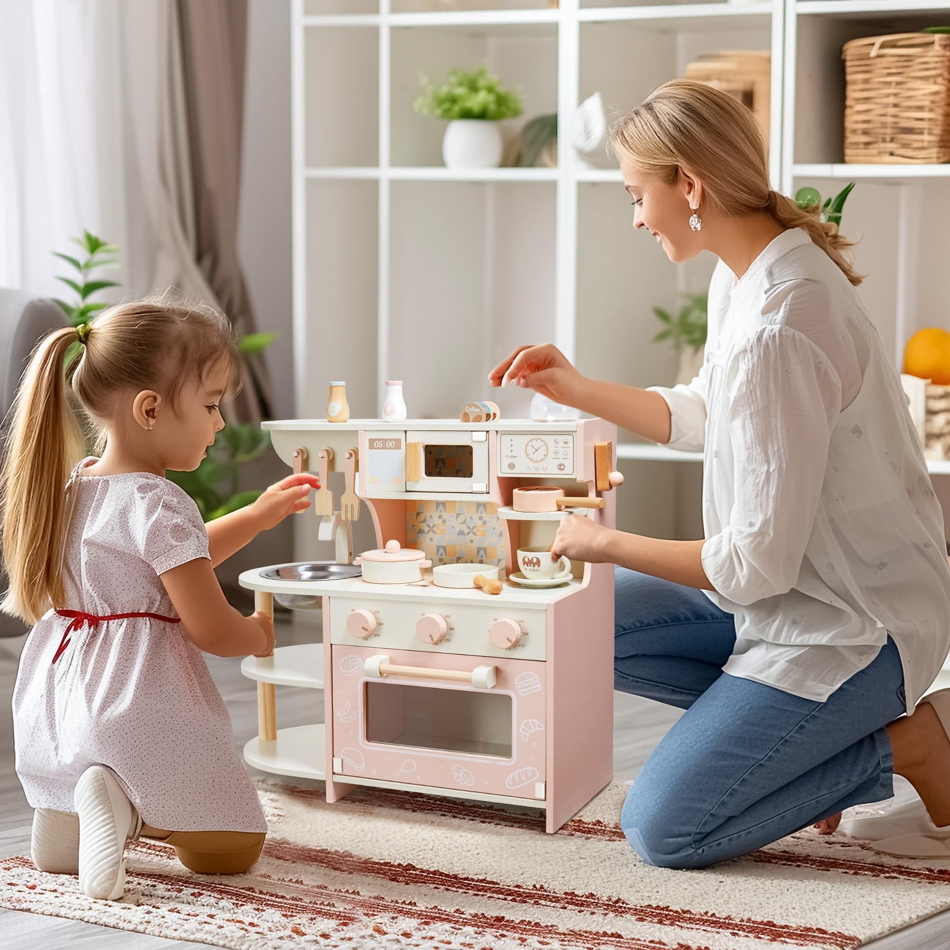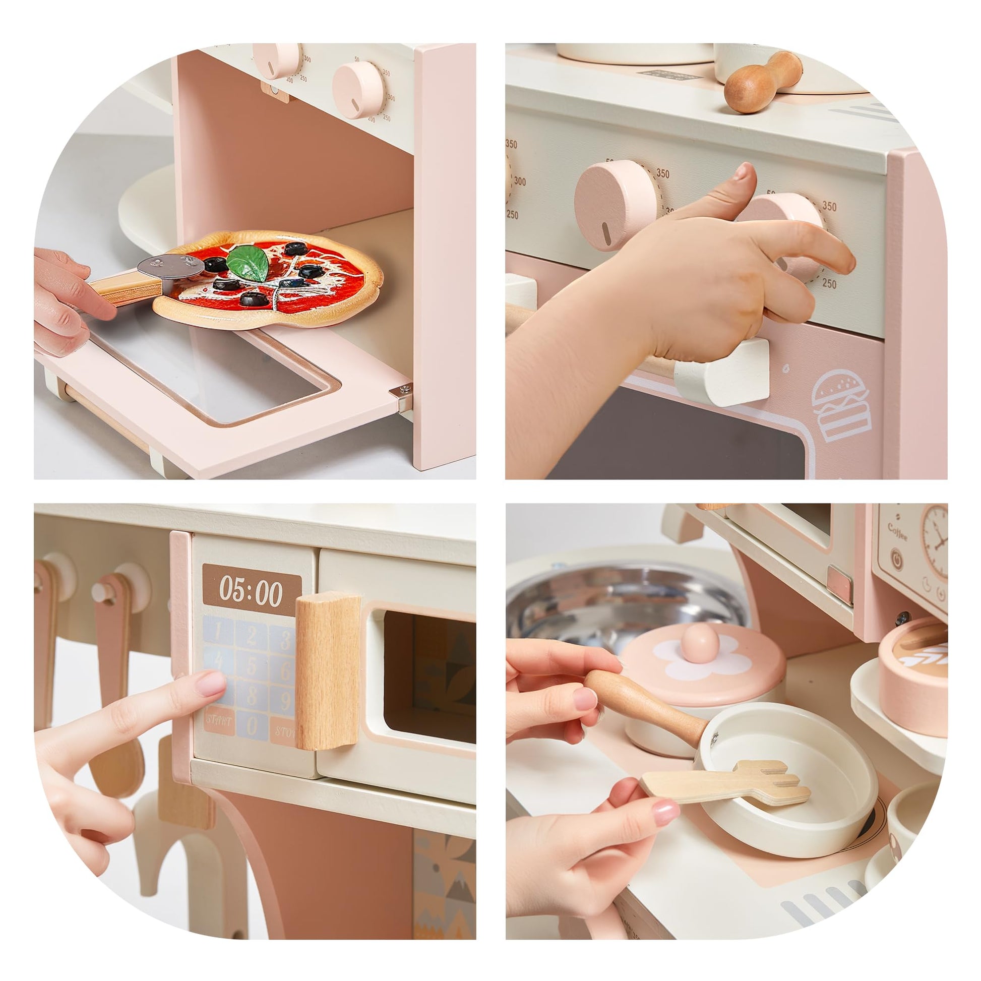Das gemeinsame Spielen in dieser Kinderküche macht nicht nur riesigen Spass, sondern fördert auch wichtige soziale Fähigkeiten. Wenn mehrere Kinder oder die Eltern mitspielen, werden die Kommunikation und die Eltern-Kind-Beziehung auf natürliche Weise gestärkt. Ihr Kind kann in die Rolle eines kleinen Küchenchefs schlüpfen und seiner Fantasie freien Lauf lassen.