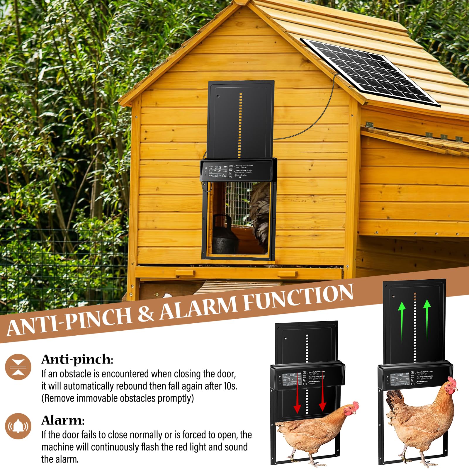 - Intelligenter Einklemmschutz: Ein Sicherheitssensor erkennt Hindernisse beim Schliessen, stoppt die Türe sofort und reversiert sie kurz, um Ihre Hühner zuverlässig vor Verletzungen zu schützen.