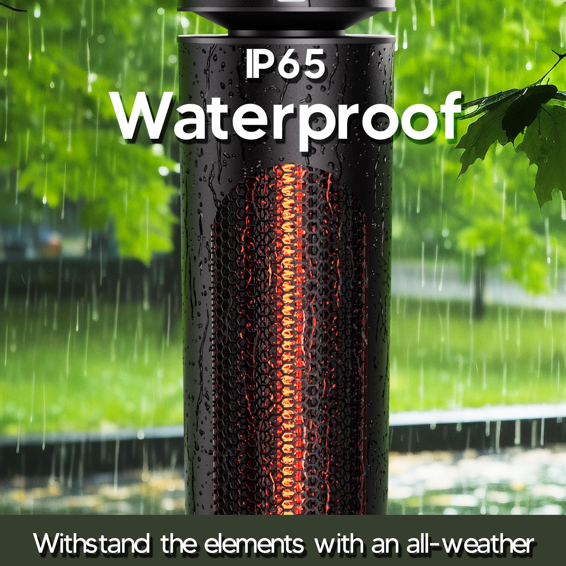 Für Ihre Sicherheit ist umfassend gesorgt. Der Heizstrahler schaltet sich bei versehentlichem Umkippen oder bei Überhitzung automatisch ab. Die robuste, korrosionsbeständige Bauweise und die IP65-Zertifizierung garantieren einen sicheren Betrieb bei jedem Wetter, auch in Anwesenheit von Kindern und Haustieren.