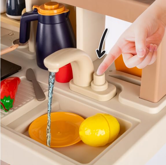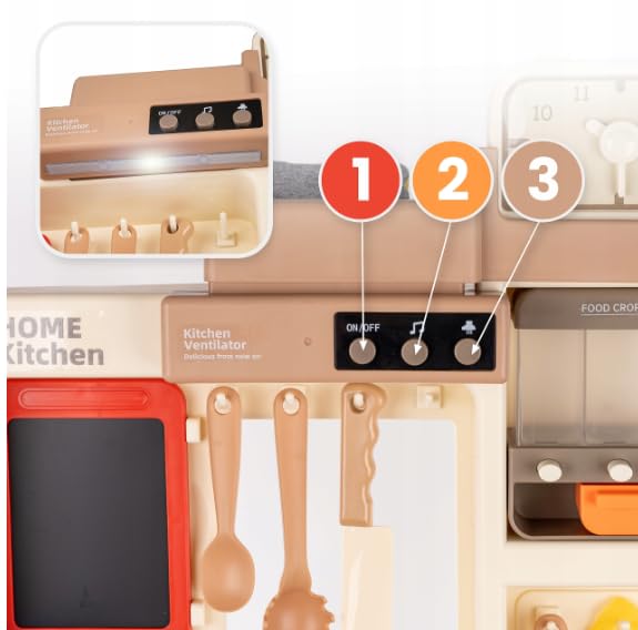 - Authentisches Kocherlebnis: Ausgestattet mit LED-Lichtern, Kochgeräuschen, sanftem Dampf am Kochfeld und einem Wasserhahn mit funktionierender Umlaufpumpe.