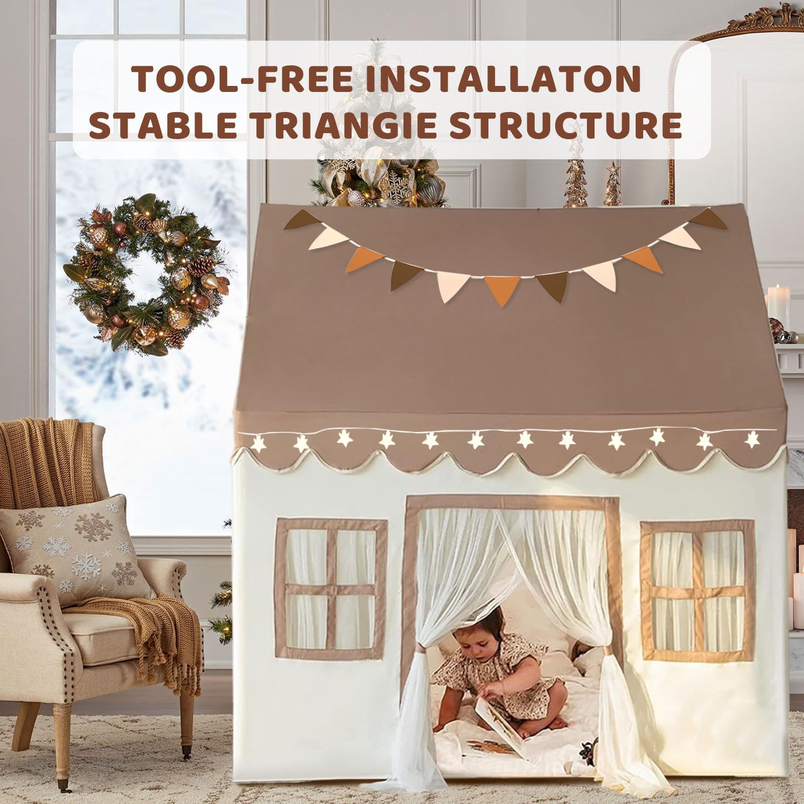 - Stimmungsvolle Dekoration: Eine 2 Meter lange LED-Lichterkette und eine dekorative Wimpelgirlande sind im Lieferumfang enthalten, um dem Zelt eine magische Atmosphäre zu verleihen (Batterien nicht enthalten).