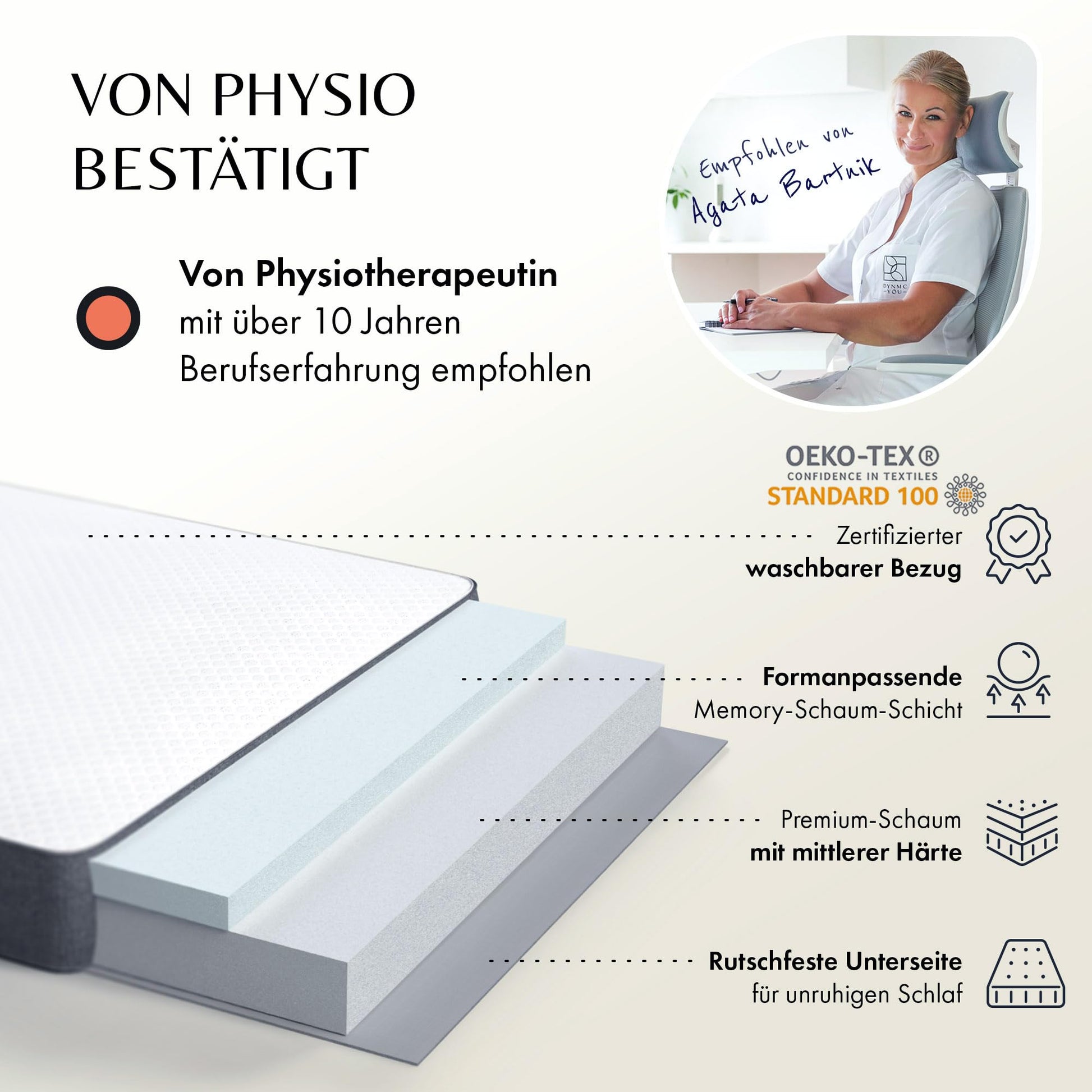 - Geprüfte Qualität & Hygiene: Gefertigt aus hautfreundlichen Materialien, die nach Oeko-TEX Standard 100 zertifiziert sind. Der robuste Bezug lässt sich dank Reissverschluss einfach abnehmen und in der Maschine waschen.