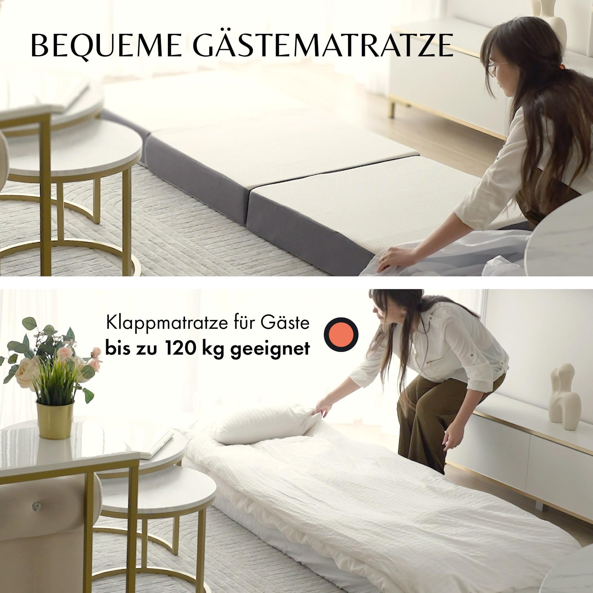 Seien Sie jederzeit auf Übernachtungsgäste vorbereitet, selbst wenn der Platz begrenzt ist. Diese Klappmatratze verwandelt jedes Zimmer im Nu in ein gemütliches Gästezimmer. Dank ihres leichten Gewichts und der praktischen Faltfunktion ist sie nicht nur schnell verstaut, sondern auch der perfekte Begleiter für Reisen im Auto oder Camper. Die grosszügige Dicke von 14 cm sorgt dafür, dass Ihre Gäste nicht das Gefühl haben, auf einer Notlösung zu schlafen, sondern den Komfort eines richtigen Bettes geniessen.