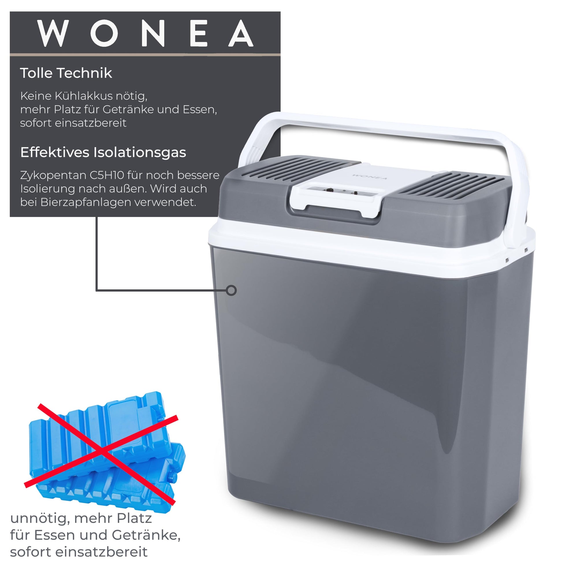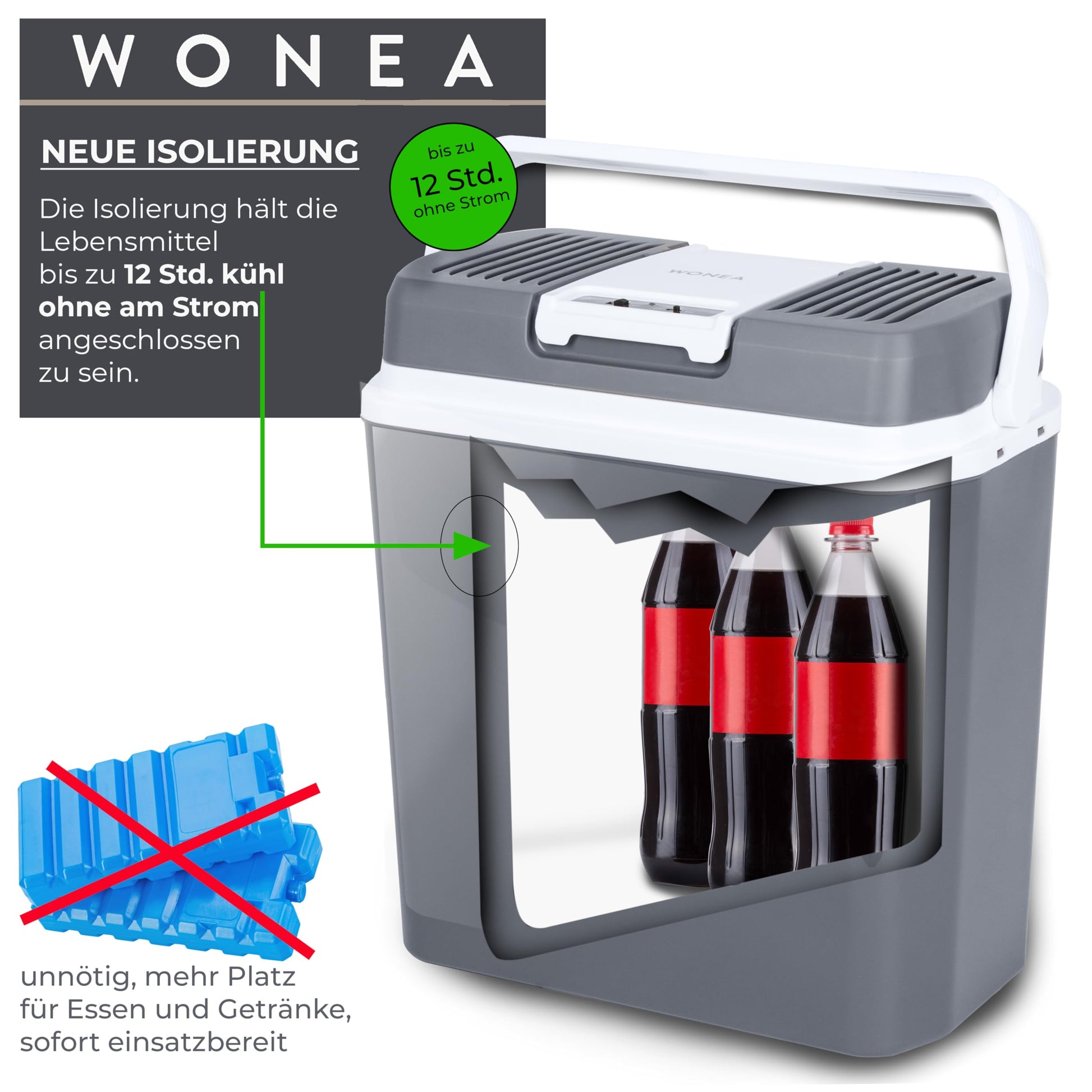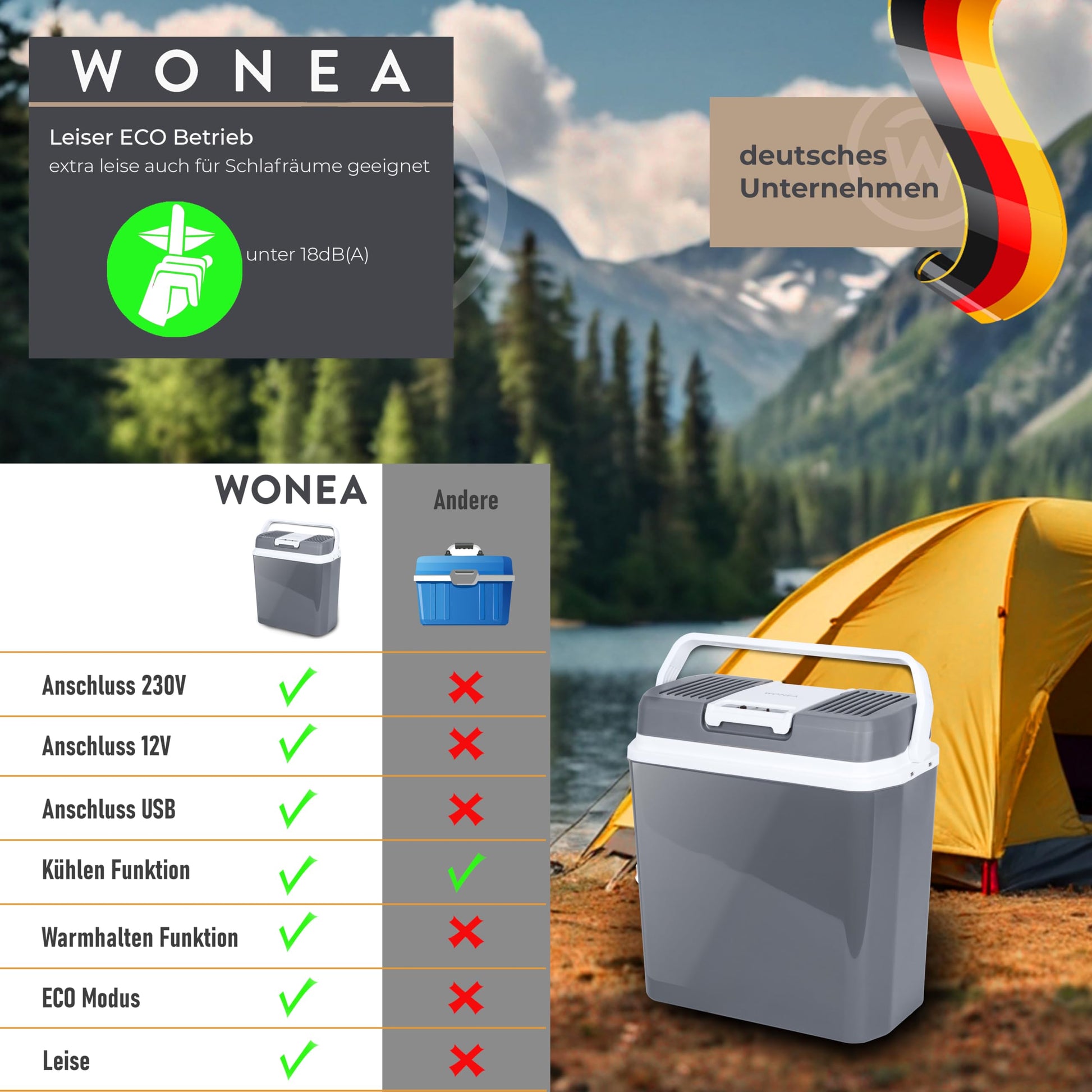 Diese vielseitige, thermoelektrische Kühlbox mit 24 Litern Fassungsvermögen ist der ideale Begleiter für unterwegs und zu Hause, um Ihre Speisen und Getränke stets auf der richtigen Temperatur zu halten.