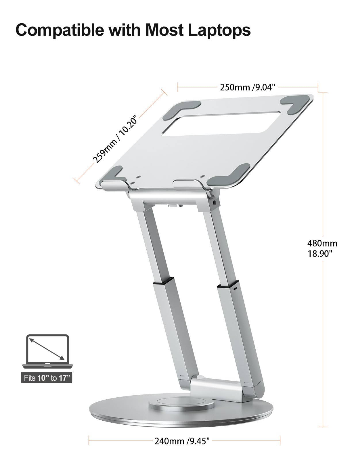 Dieser höhenverstellbare und um 360° drehbare Laptop-Ständer ist die ideale Lösung, um Ihren Arbeitsplatz flexibler und ergonomischer zu gestalten.