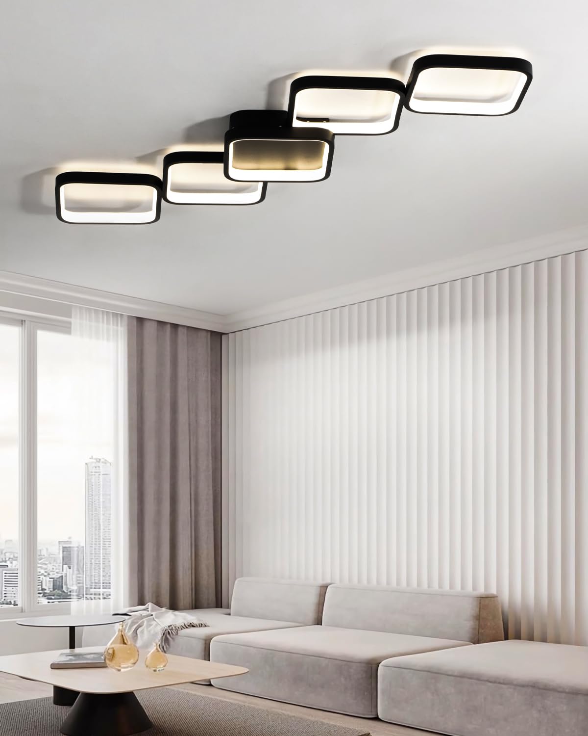 Verleihen Sie Ihren Räumen mit dieser modernen LED-Deckenleuchte ein stilvolles und flexibles Lichtambiente. Ihr elegantes, geometrisches Design fügt sich nahtlos in unterschiedlichste Einrichtungsstile ein und sorgt überall für eine warme und einladende Atmosphäre.