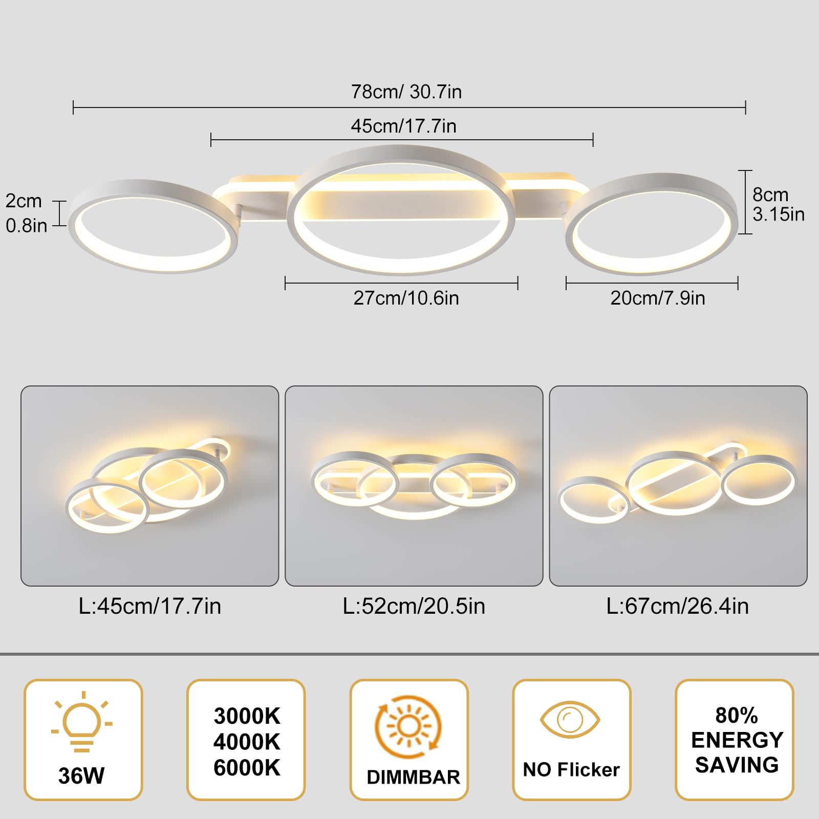 Verleihen Sie Ihrem Zuhause mit dieser modernen LED-Deckenleuchte einen Hauch von Eleganz und Individualität. Das kunstvolle Design aus drei Ringen kombiniert mit fortschrittlicher Lichttechnologie schafft eine einzigartige Atmosphäre in jedem Raum.