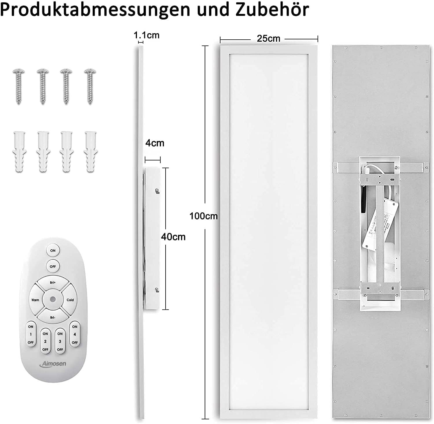 - Grossflächige Ausleuchtung: Mit seinen Massen von 100 x 25 cm sorgt dieses Aufbaupanel für eine gleichmässige und helle Beleuchtung.