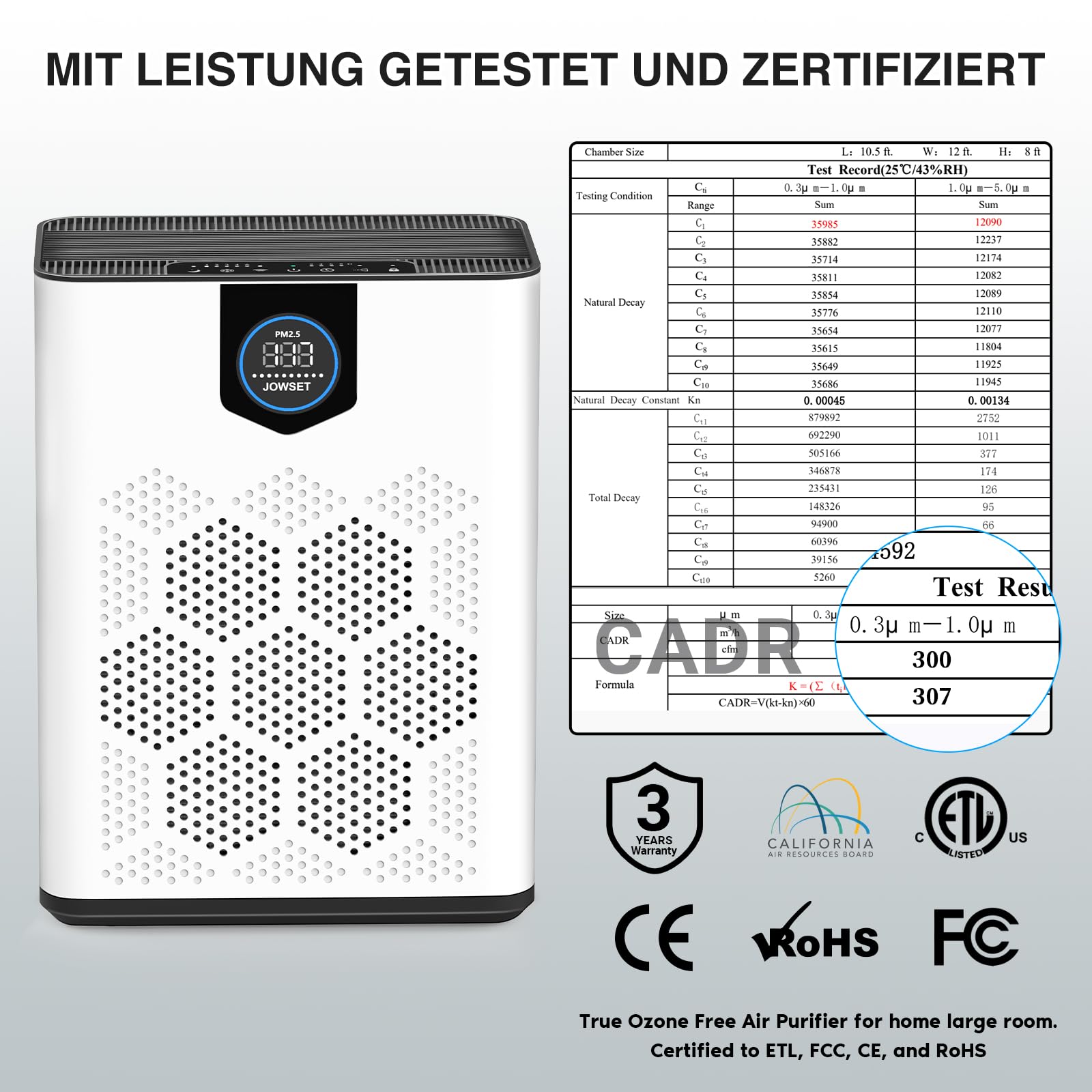 - Geprüfte Qualität und Sicherheit: Das Gerät ist 100 % ozonfrei und verfügt über zahlreiche Zertifizierungen (CE, FCC, ETL, CARB), inklusive einer 24-monatigen Garantie.