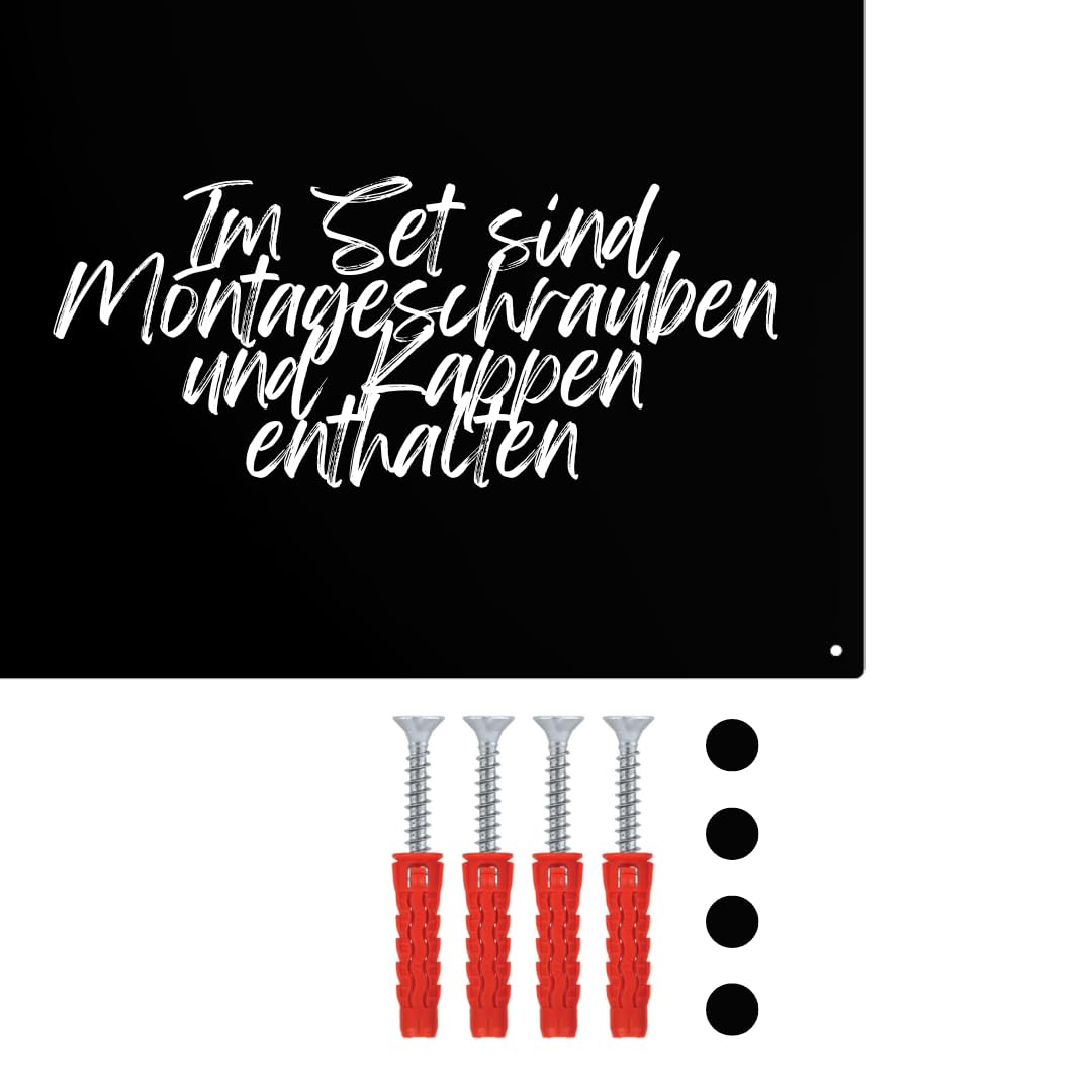 - Unkomplizierte Wandmontage: Die Tafel wird mit dem mitgelieferten Befestigungsmaterial sicher an Wänden aus Beton, Ziegel oder Gips angebracht. Selbstklebende Abdeckkappen für die Schrauben sorgen für ein sauberes und edles Finish.