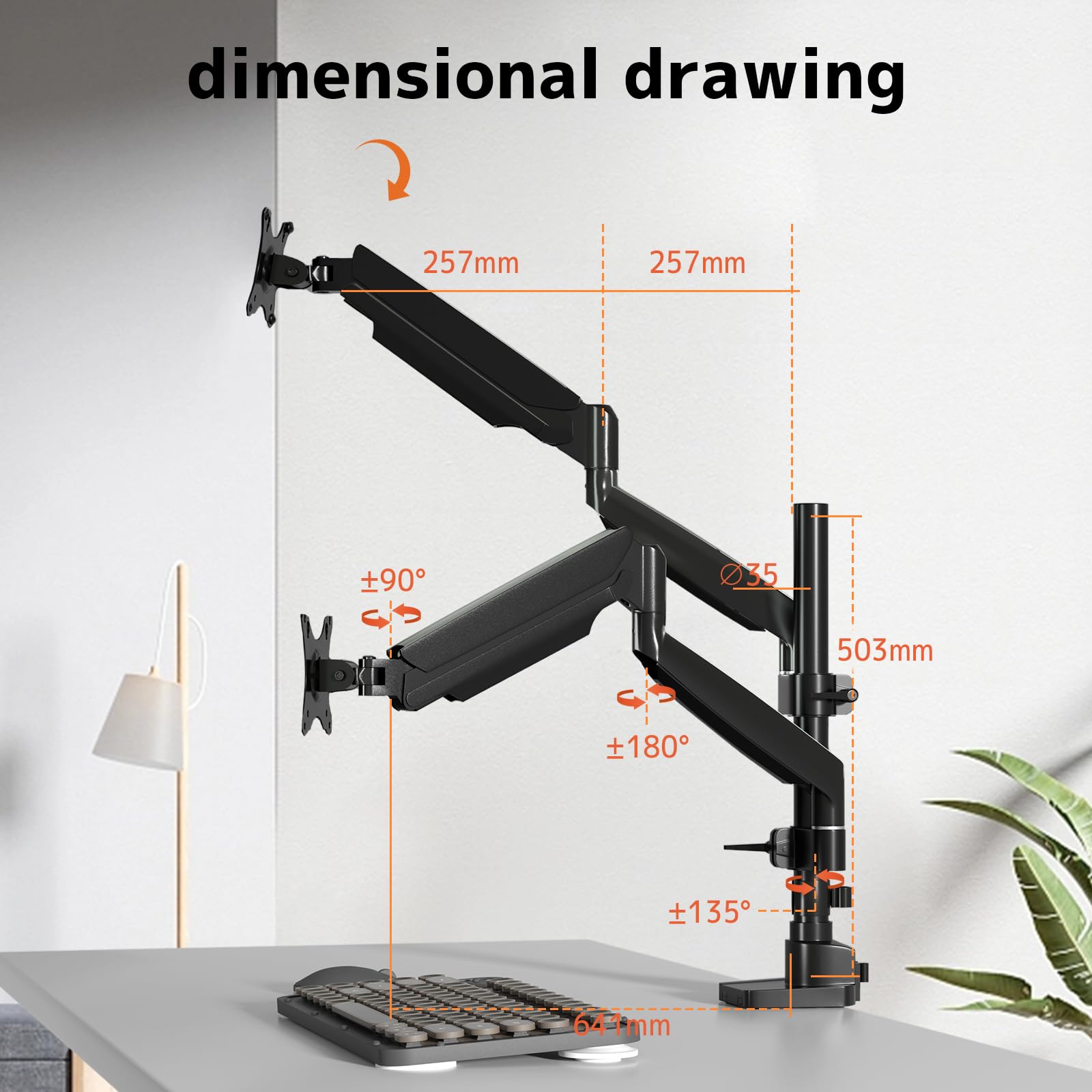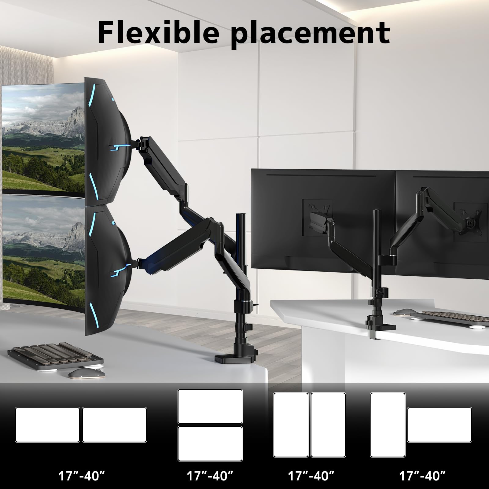 - Umfassende Kompatibilität: Geeignet für zwei Bildschirme mit einer Grösse von 17 bis 40 Zoll. Jeder Arm ist für eine Traglast von bis zu 13 kg ausgelegt und unterstützt somit auch grosse Breitbild- oder Ultra-Wide-Monitore.