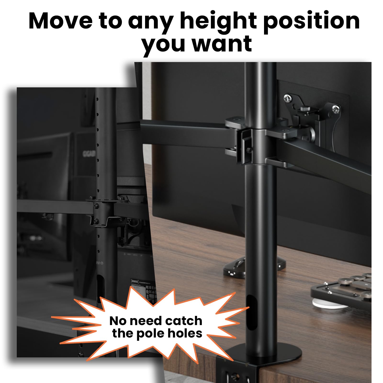 - Stufenlose Höhenverstellung: Passen Sie die Höhe der Monitore einfach an, um eine perfekte Ausrichtung im Hoch- oder Querformat zu erreichen.