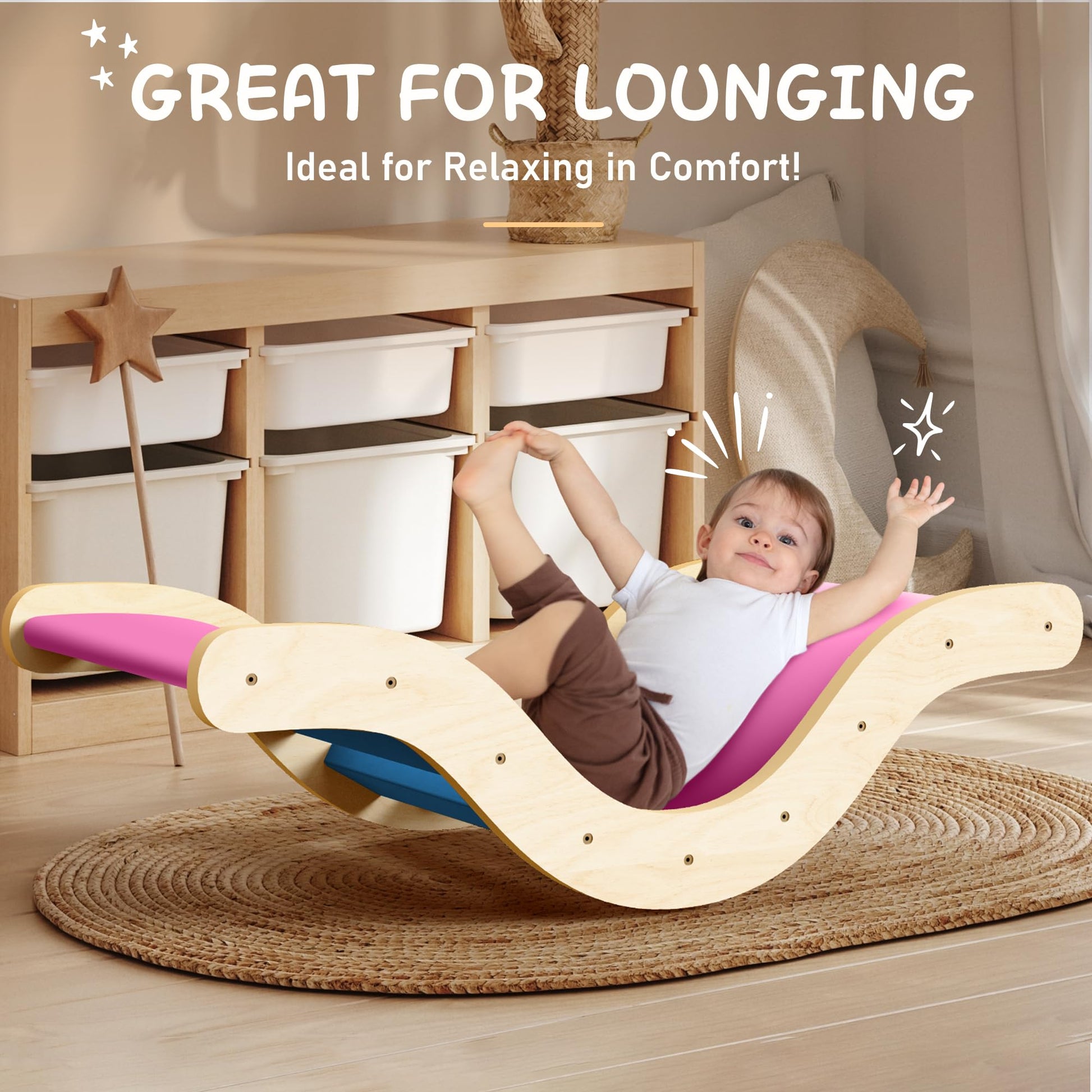 - Ergonomisch geformter Bogen: Das spezielle Bogendesign ist ideal auf die Bedürfnisse von Kleinkindern abgestimmt und bietet einen bequemen Ort zum Ausruhen und Entspannen. Im Vergleich zu steilen oder kantigen Alternativen sorgt die ergonomische Form für ein spürbar angenehmeres Spielgefühl.