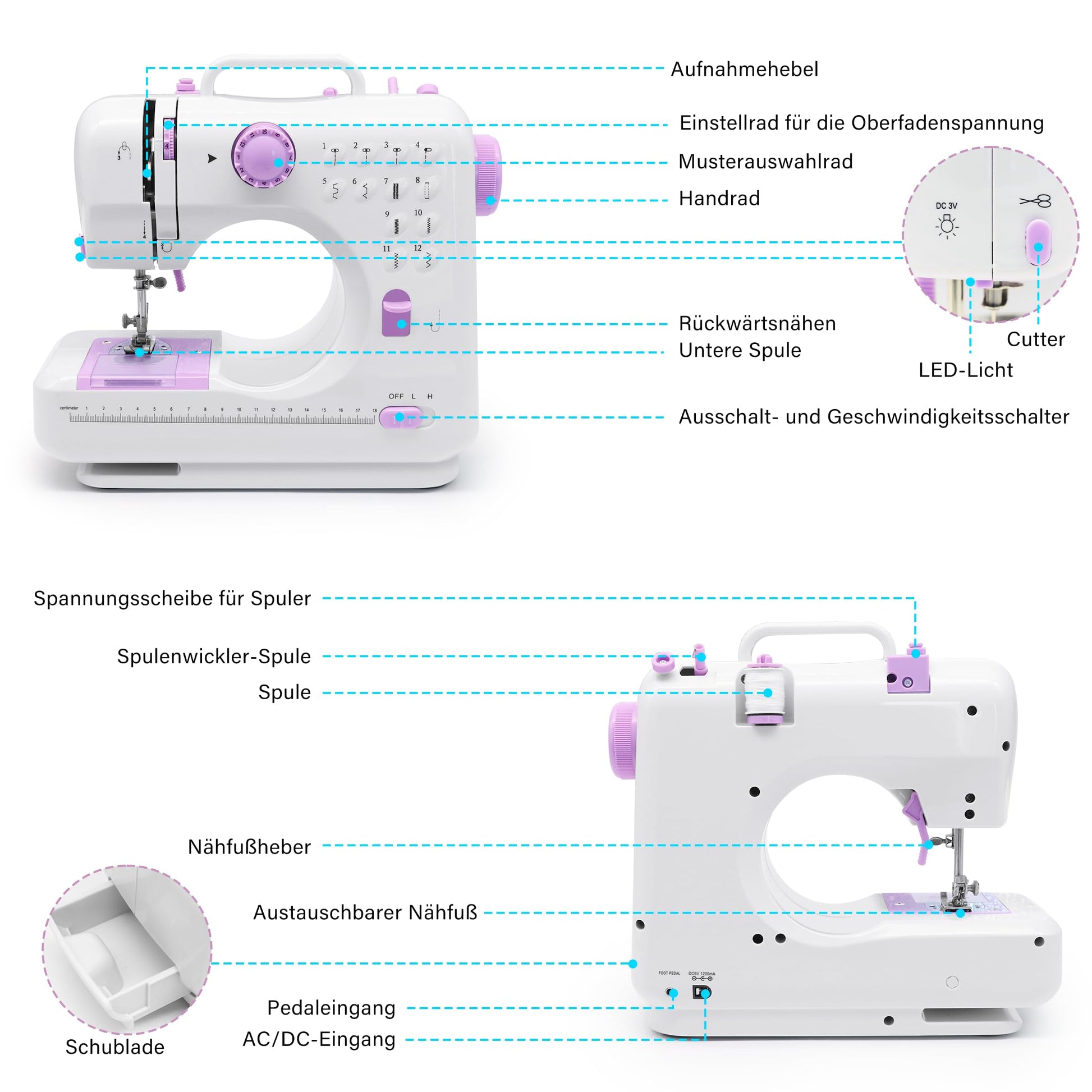 Diese kompakte und tragbare Nähmaschine ist der perfekte Einstieg in die Welt des Nähens und ein praktischer Helfer für schnelle Reparaturen sowie kreative Projekte zu Hause oder unterwegs.