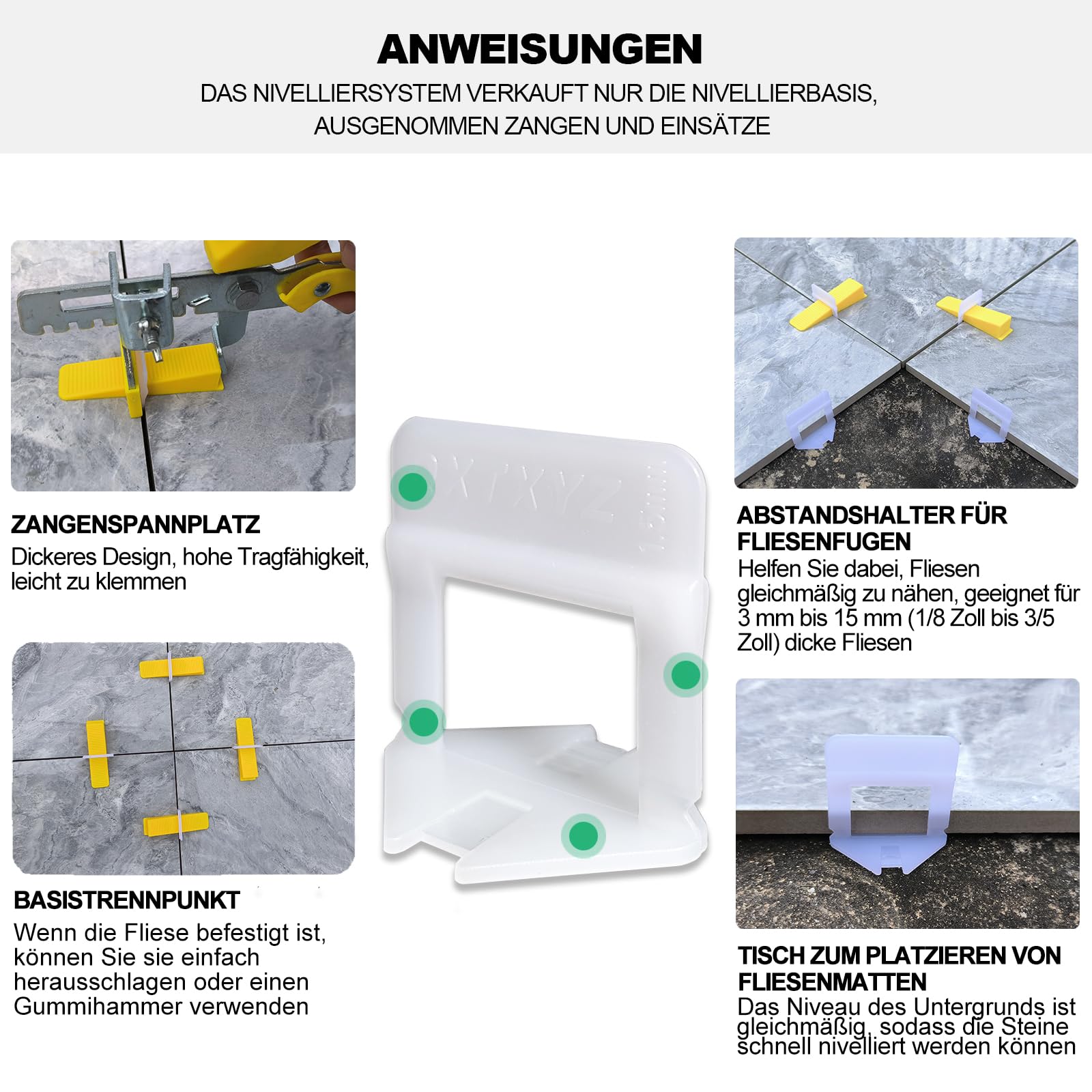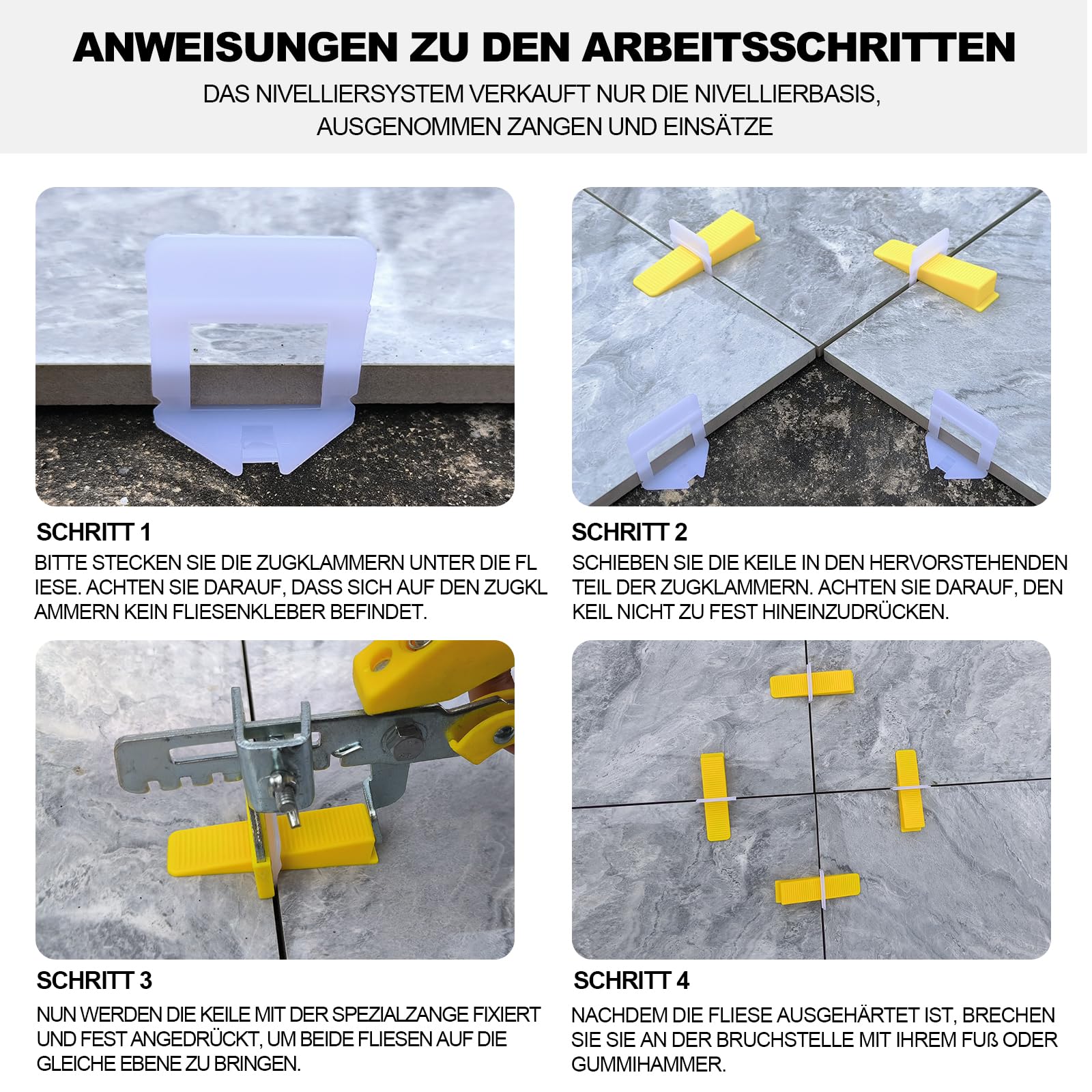 Die Anwendung ist denkbar einfach und macht das Fliesenlegen deutlich angenehmer. Sowohl für professionelle Fliesenleger als auch für ambitionierte Heimwerker ist dieses Set das beste Hilfsmittel, um ein Ergebnis in Profi-Qualität zu erzielen.