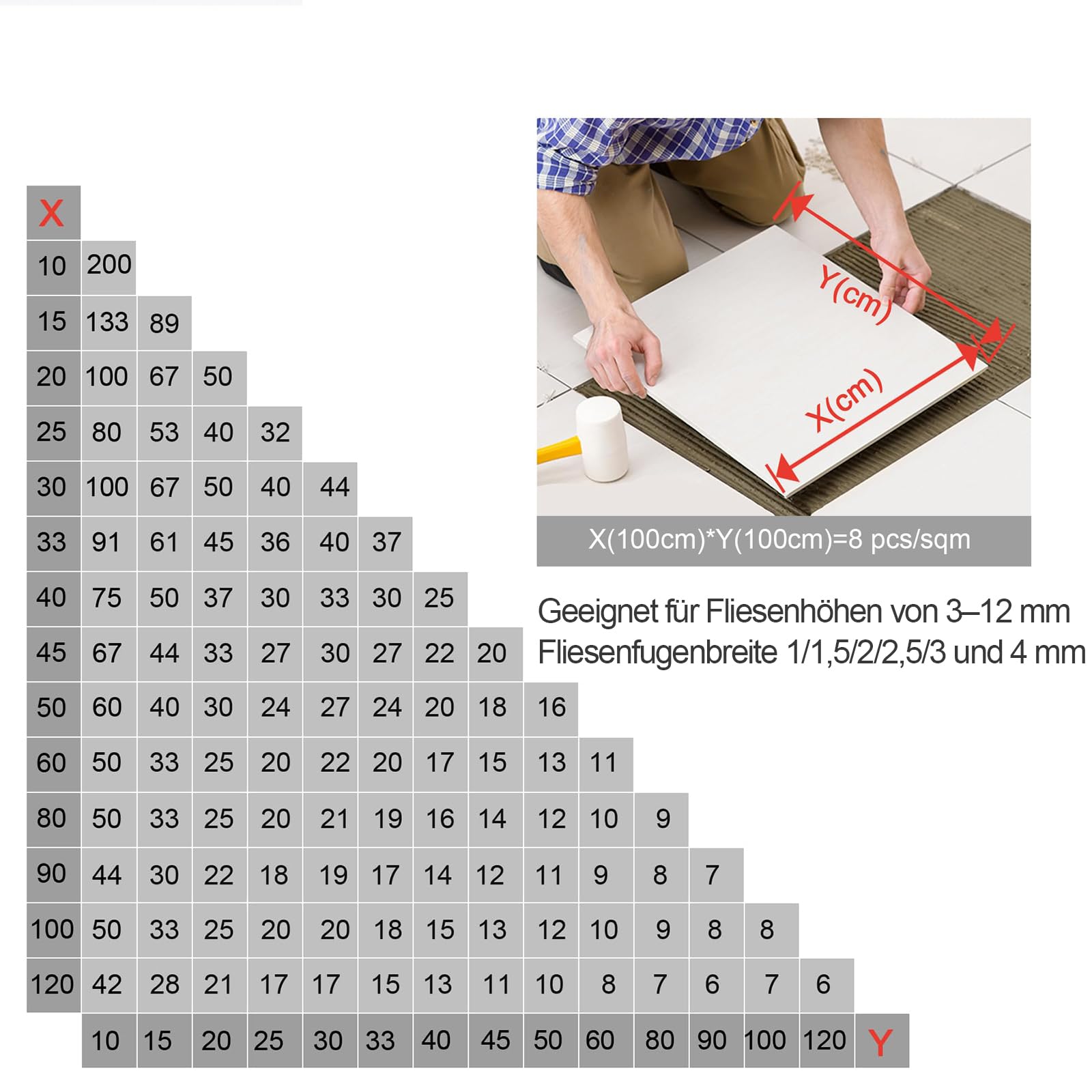 - Vielseitige Anwendung: Geeignet für die Verlegung von Boden- und Wandfliesen mit einer Materialstärke von 1.5 mm bis zu 12 mm.