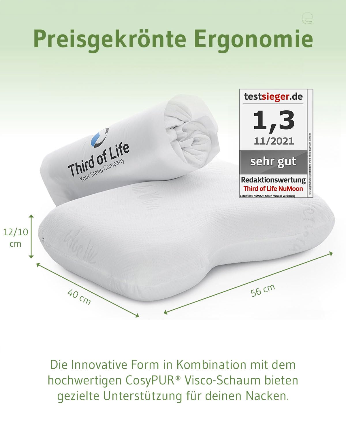Im Lieferumfang sind das orthopädische NuMOON Nackenstützkissen sowie zwei Kissenbezüge enthalten – einer ist bereits aufgezogen und ein zweiter liegt kostenlos bei. Die Bezüge sind abnehmbar und waschbar, um eine einfache und hygienische Pflege zu gewährleisten. Der Schaumkern selbst sollte nicht gewaschen werden.