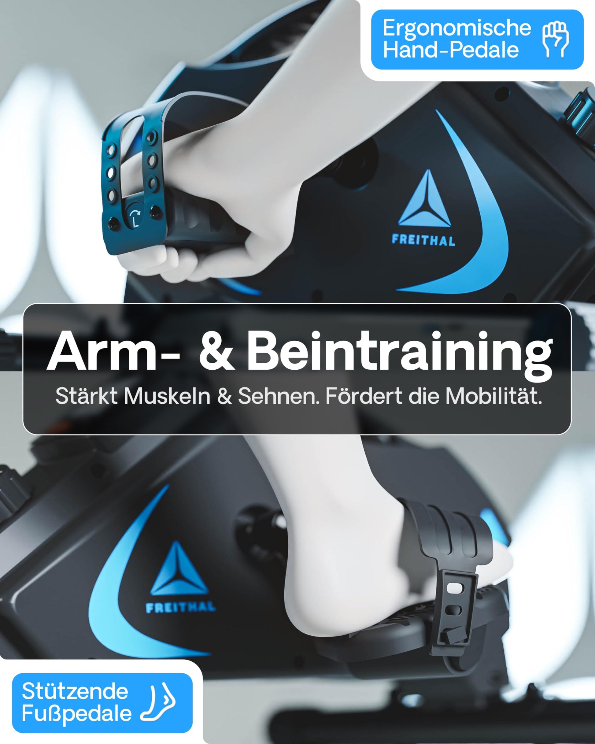 - Vielseitig für Arme und Beine: Dank der einfach zu montierenden Hand- und Fusspedalen eignet sich das Gerät perfekt für das Training des gesamten Ober- und Unterkörpers mit nur einem Gerät.