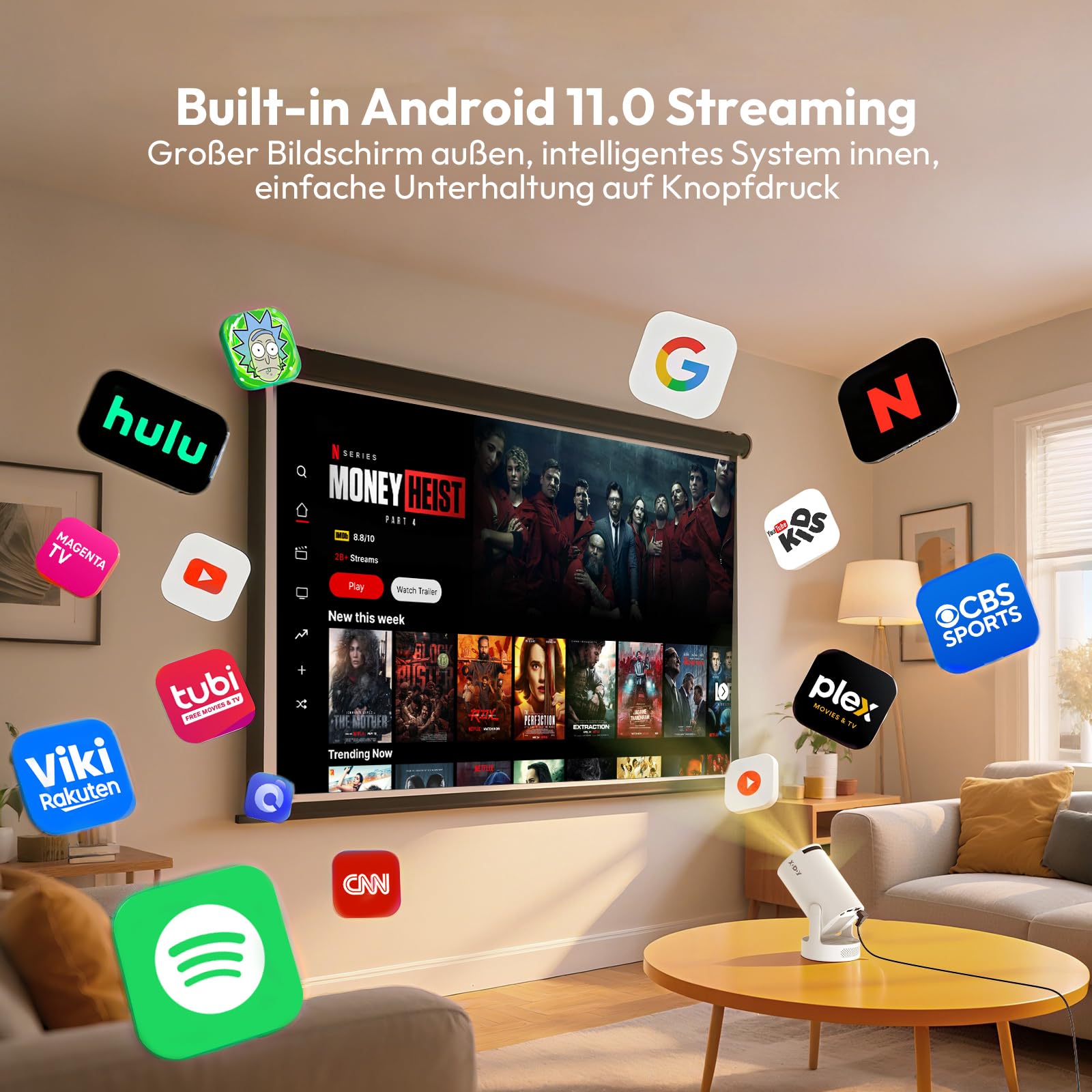 Ja, absolut. Dank des integrierten Android 11 Betriebssystems können Sie Streaming-Apps wie Netflix, YouTube oder Disney+ direkt auf dem Projektor installieren und nutzen, ohne einen Laptop oder Fire TV Stick anschliessen zu müssen.