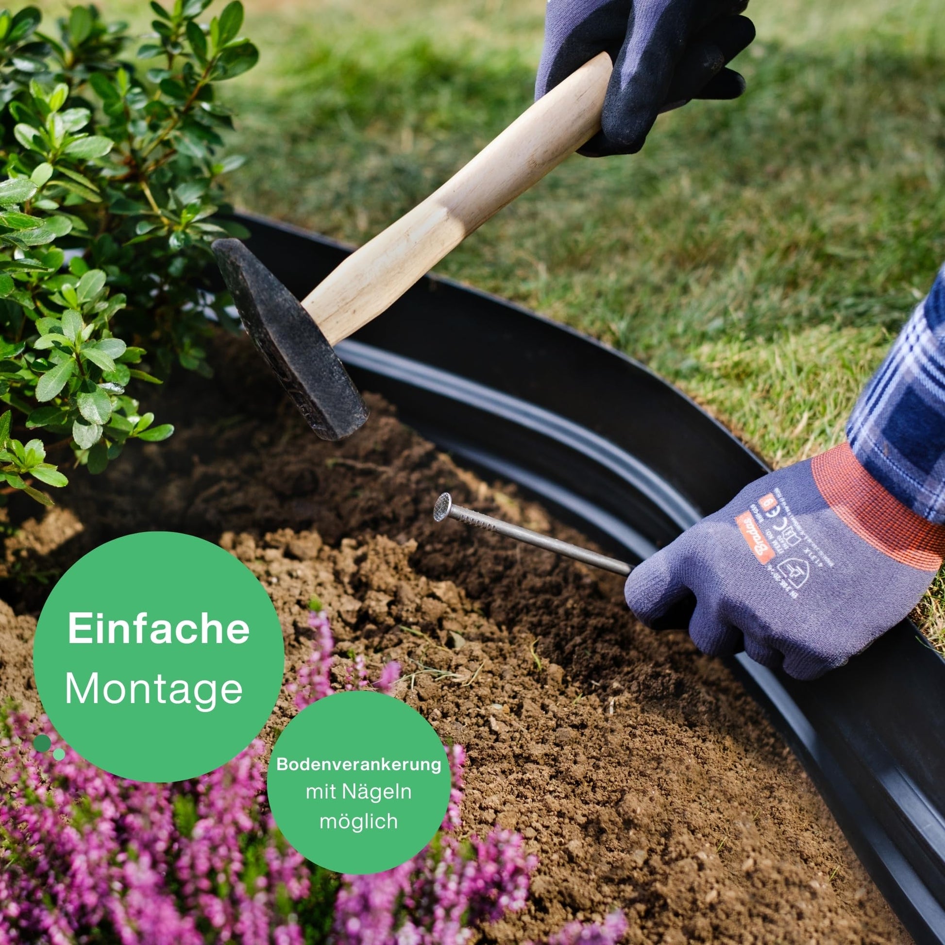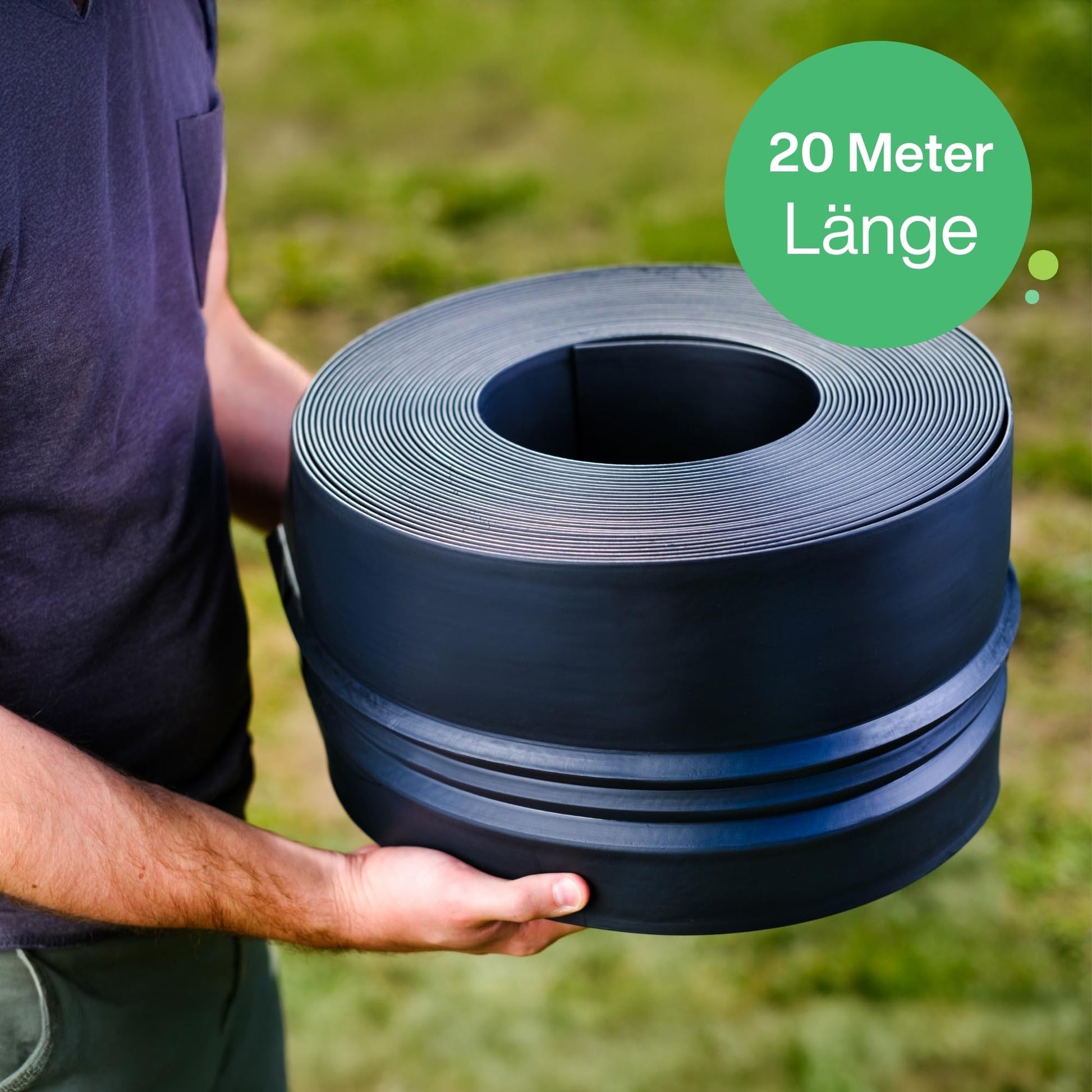 Durch die Höhe von 20 cm kann die Kante tief genug eingegraben werden, um eine effektive Wurzelsperre zu bilden, während sie an der Oberfläche nahezu unsichtbar bleibt. So fügt sie sich harmonisch in das Gartenbild ein und sorgt für eine saubere, unauffällige Abgrenzung.