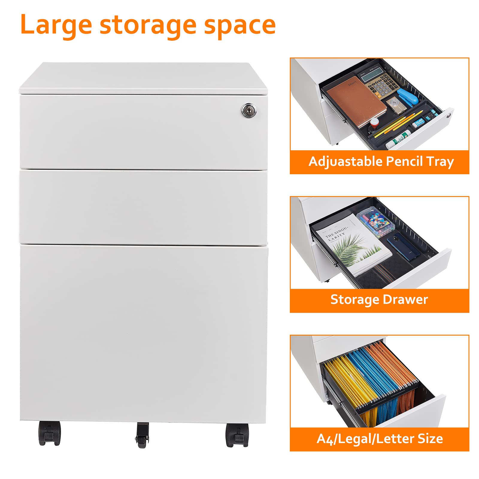 - Durchdachter Stauraum: Drei leichtgängige Schubladen bieten Platz für all Ihre Büroutensilien. Die obere Schublade eignet sich perfekt für Schreibwaren, während die untere Schublade für Hängemappen der Formate A4, Legal und Brief konzipiert ist.