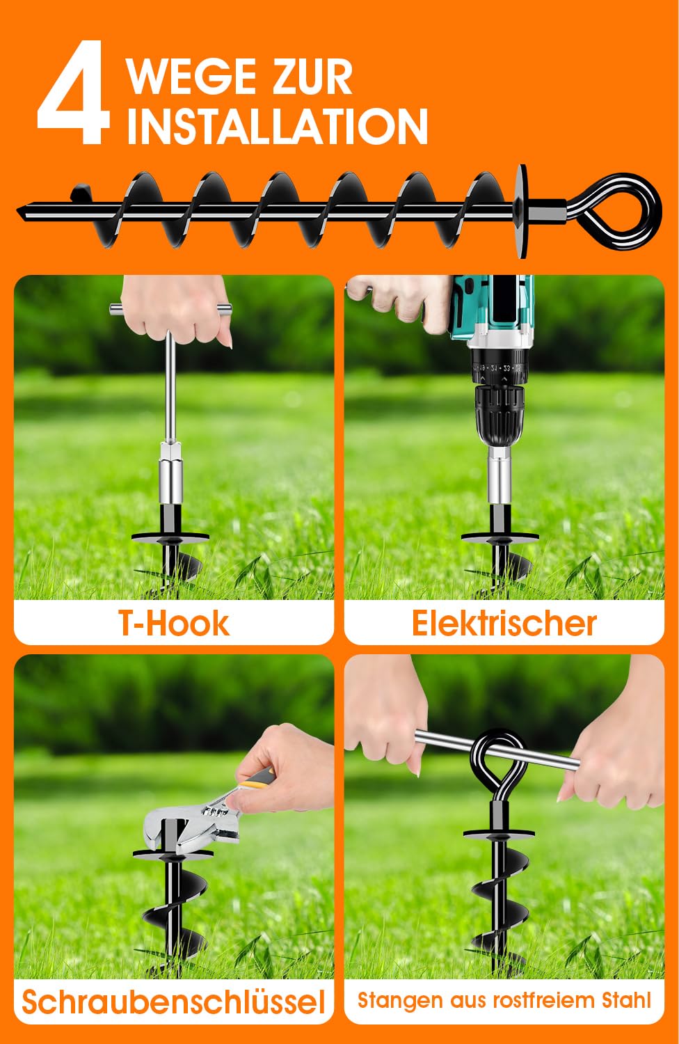 Mit diesen Schwerlast-Ankern sichern Sie Ihre wertvollen Aussenanlagen wie Trampoline, Vordächer oder Schaukeln zuverlässig gegen Sturm und Verrutschen. Das spezielle Spiral-Design bietet eine überlegene Haltekraft im Erdreich, sodass alles sicher an seinem Platz bleibt.