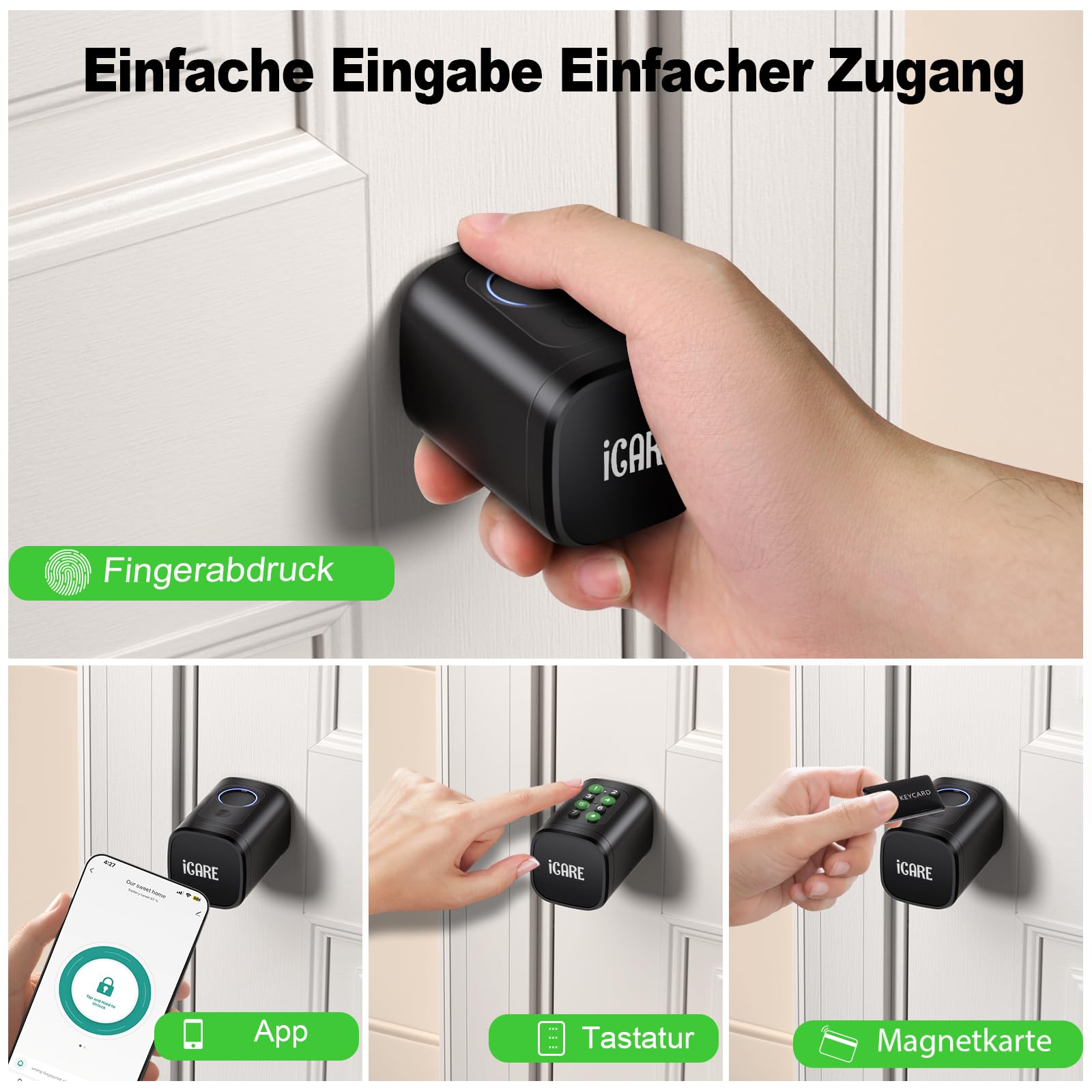 - Vielfältige Entsperrmethoden: Wählen Sie aus fünf Zugangsoptionen – Fingerabdruck, PIN-Code, RFID-Karte, Smartphone-App (Bluetooth) oder klassischer mechanischer Schlüssel.