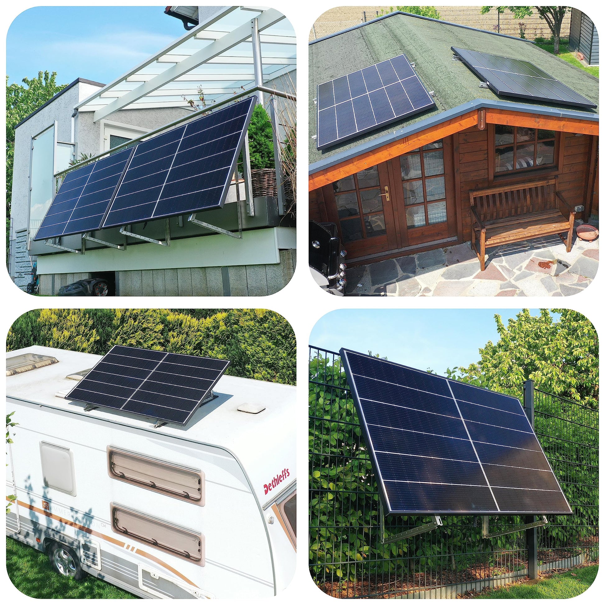 Dank des flexiblen Designs können Sie die Halterungen an verschiedensten Orten installieren, darunter auf Flachdächern, an Balkongeländern, an der Hauswand oder auch freistehend im Garten, um die Sonneneinstrahlung optimal zu nutzen.