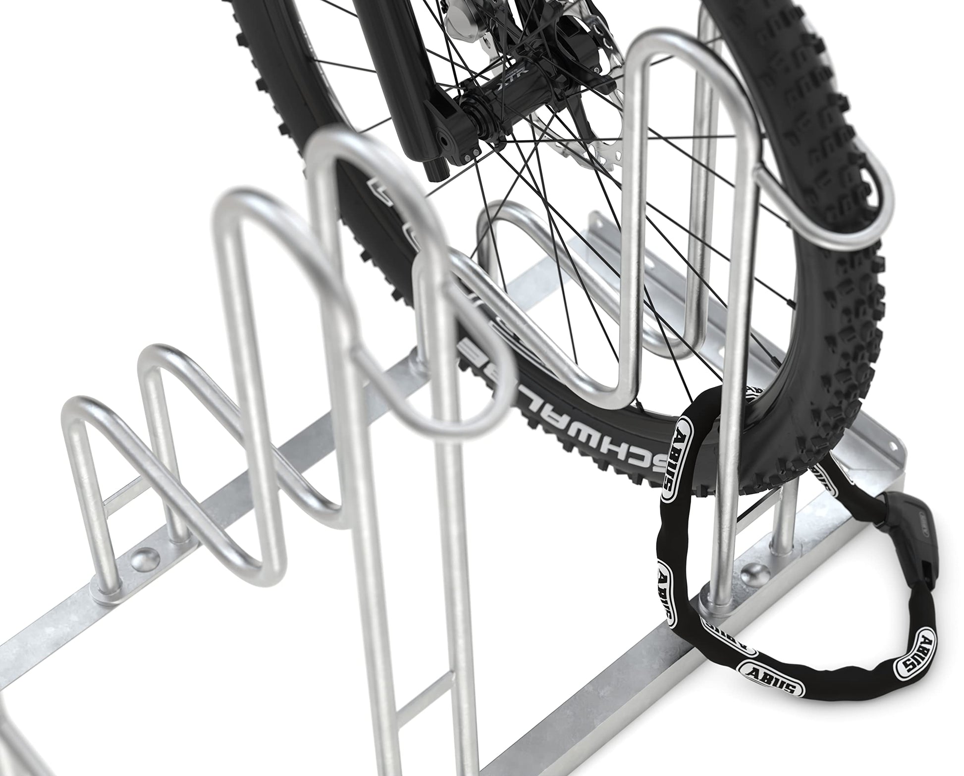 Der Veloständer ist aus robustem, feuerverzinktem Stahl gefertigt. Diese Behandlung bietet einen langlebigen Korrosionsschutz und macht ihn absolut wetterfest und ideal für den Einsatz im Freien über viele Jahre.